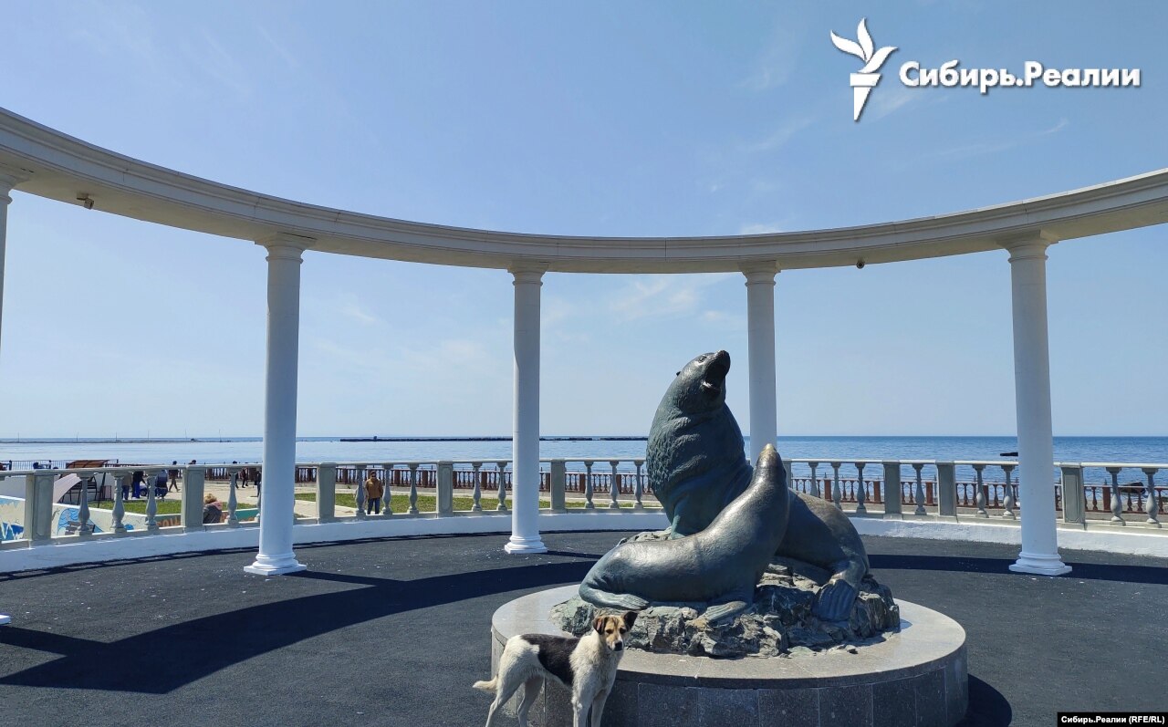 А можно любоваться сивучами и бесплатно в бинокли, которые установлены на набережной. Сивучей в Невельске любят, они даже изображены на городском гербе.