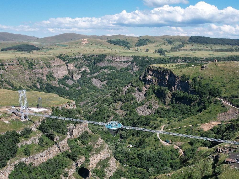Он находится на высоте 200–300 метров над землей. Пол моста стеклянный, так что эта активность — для тех, кто не боится высоты. В «алмазе» есть ресторан с панорамным видом.