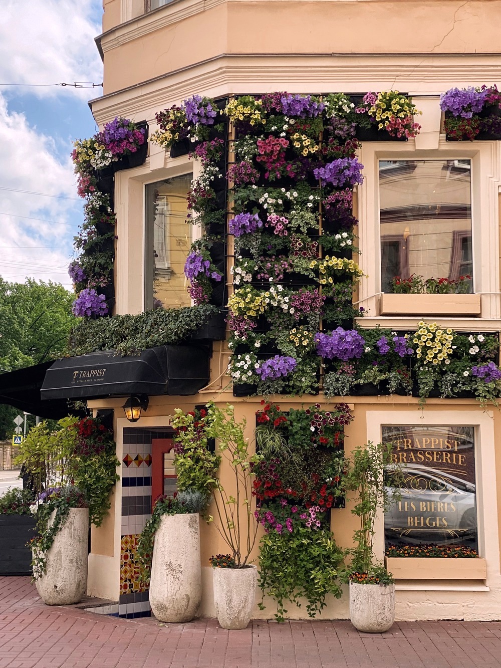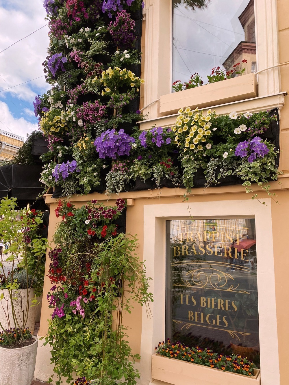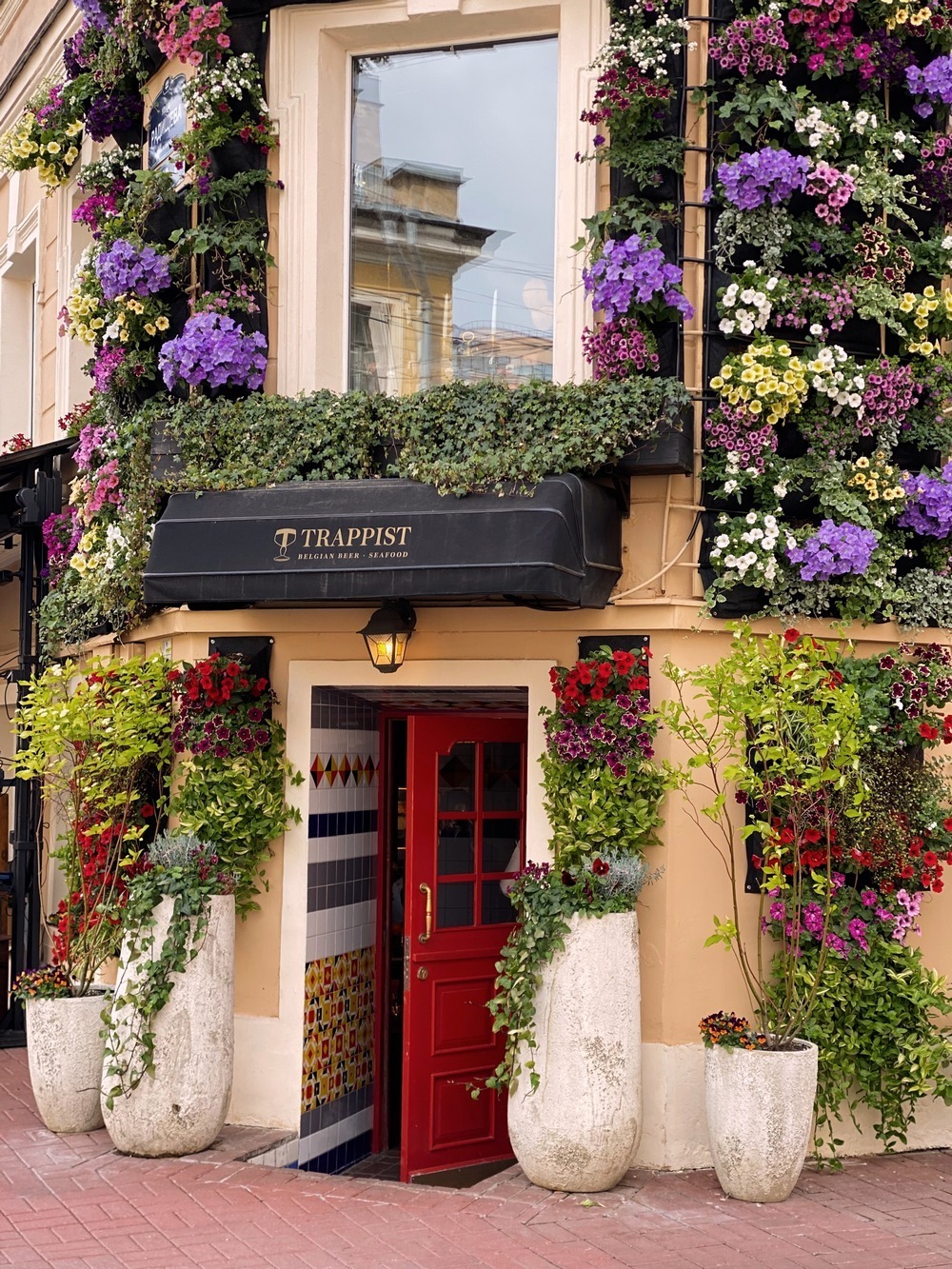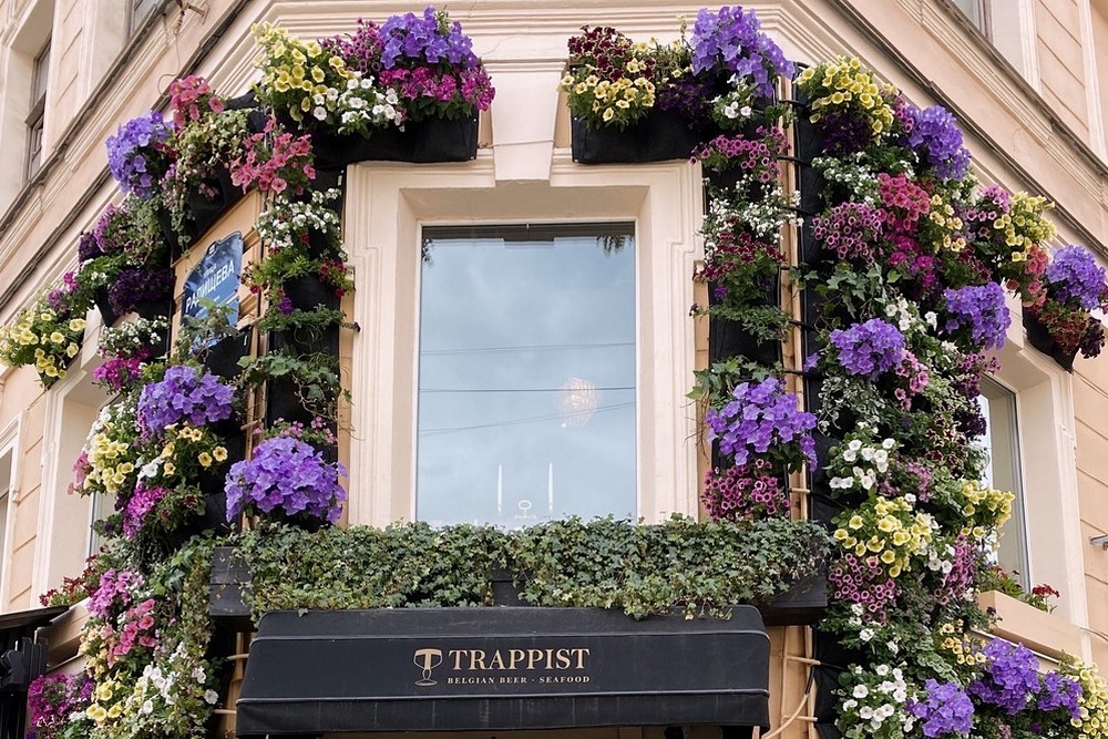 Фасад исторического доходного дома на улице Радищева, 36 украсили живыми цветами: зеленая композиция появилась у входа в брассерию «Траппист». Именно это заведение — первый проект ресторанной группы Dreamteam — занималось оформлением здания.