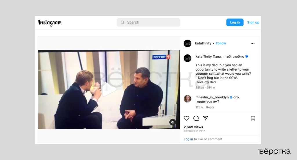Корреспондент «Вёрстки» несколько раз переписывалась с Екатериной Соловьёвой. Режиссер отказалась комментировать свои отношения с отцом и творческую деятельность, сказав, что переживает за безопасность участников своих проектов.