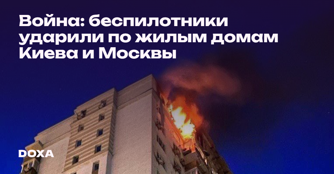 Ранним утром в Москве жилые дома также атаковали беспилотники. По меньшей мере два человека пострадали, сообщил мэр Москвы Сергей Собянин. Министерство обороны утверждает, что столицу атаковали восемь беспилотников, все они были сбиты. При этом провластные телеграм-каналы заявляли, что в атаке были задействованы десятки дронов. В Московской области, на подлете к Москве, также были сбиты беспилотники, сообщил губернатор Андрей Воробьев.