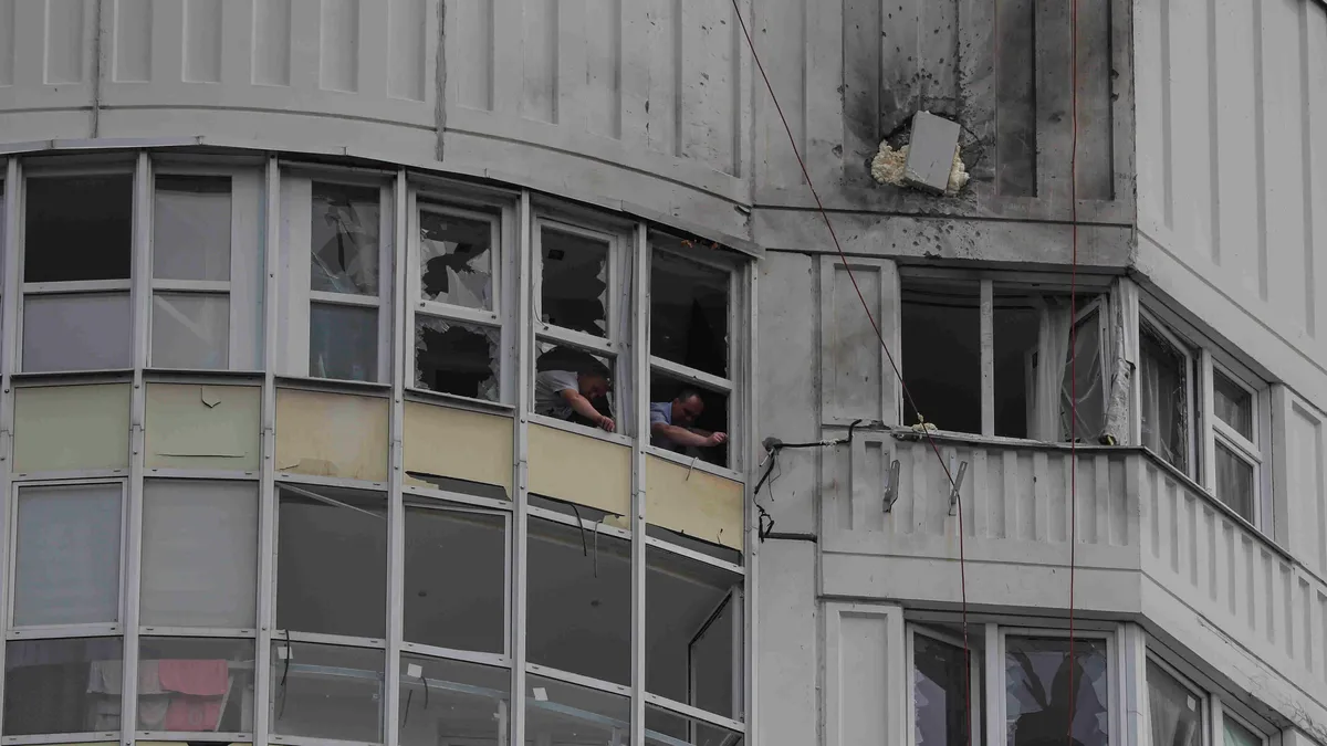 Жилой дом, пострадавший от атаки дронов утром 30 мая, Москва. Фото: EPA-EFE / MAXIM SHIPENKOV