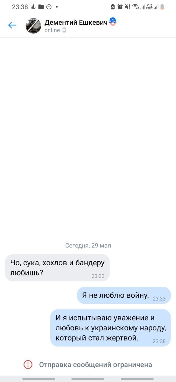 Студент, приславший «Бумаге» скриншоты с угрозами, предполагает, что скриншоты антивоенных сообщений Белоусова и студентов зет-каналам прислали его однокурсники.