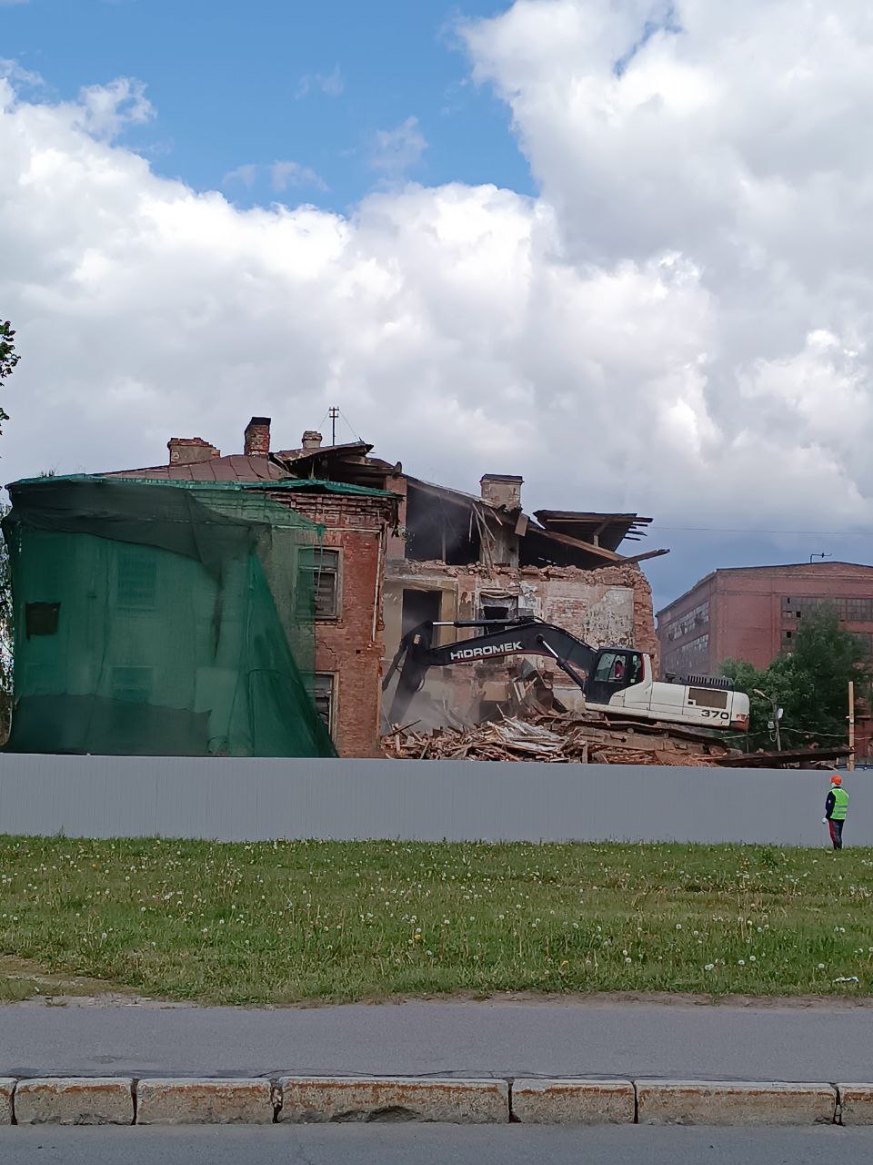 В Петербурге возобновили снос исторического дома для служащих Невской писчебумажной фабрики «Братья Варгунины» на Октябрьской набережной, 56.