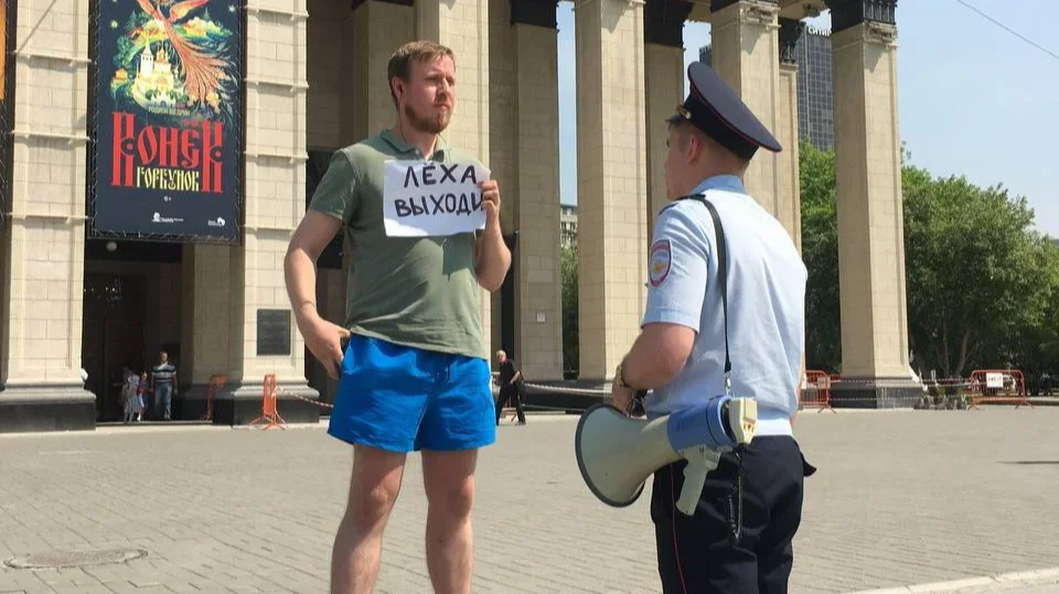 According to Ostorozhno Moscow, a man who had scattered leaflets on Pushkin Square, Moscow was taken to a police van. Another man who had come out to the Moscow Musical Theatre with a “Freedom to Navalny” poster was also detained.