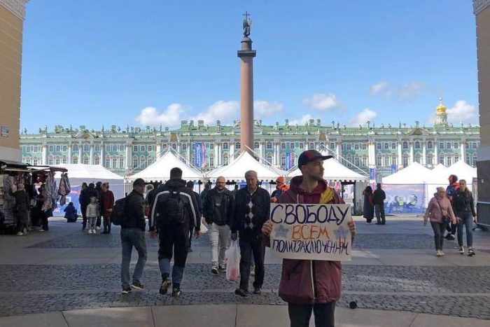 Но нас оказалось мало — когда мы с подругой пришли на Дворцовую, там стоял один человек с бумажкой «Свободу политзаключенным». Мы сходили к Гостиному двору, оттуда — на Марсово поле, потом вернулись на Дворцовую.