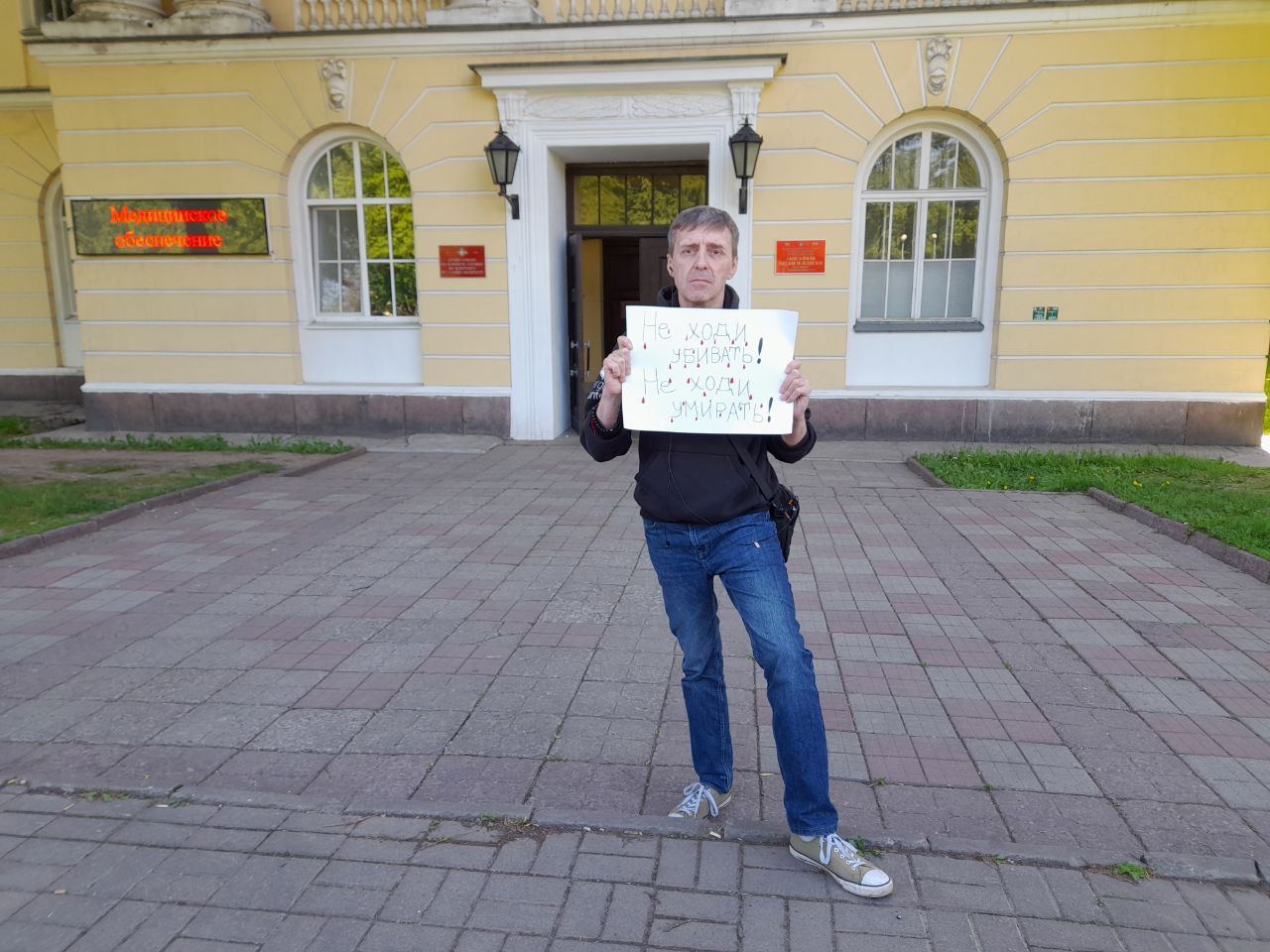 Детали. Активисты простояли в пикете около 20 минут, сообщает MR7. На плакате у Иоффе было написано: «Не ходи убивать, не ходи умирать».