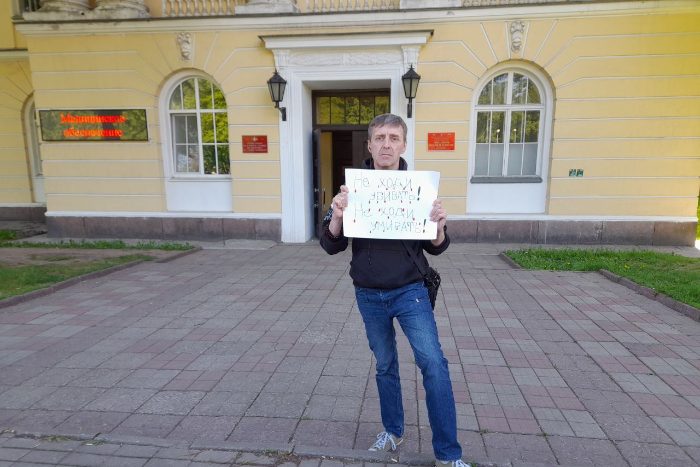 Петербургские активисты Виталий Иоффе и Татьяна Сичкарева вышли с пикетами к пункту отбора на военную службу по контракту рядом с ТЮЗом, пишет «ОВД-Инфо».