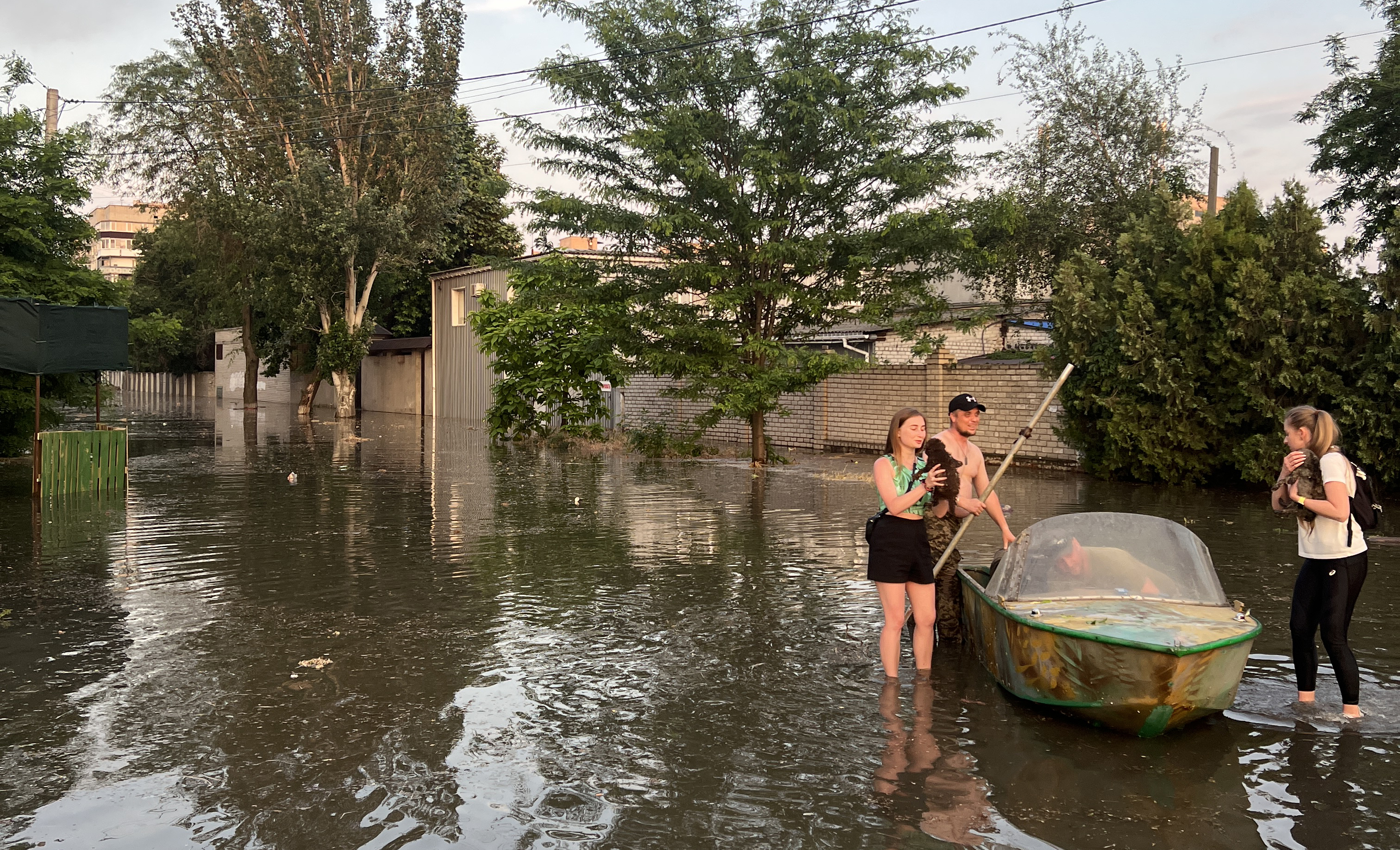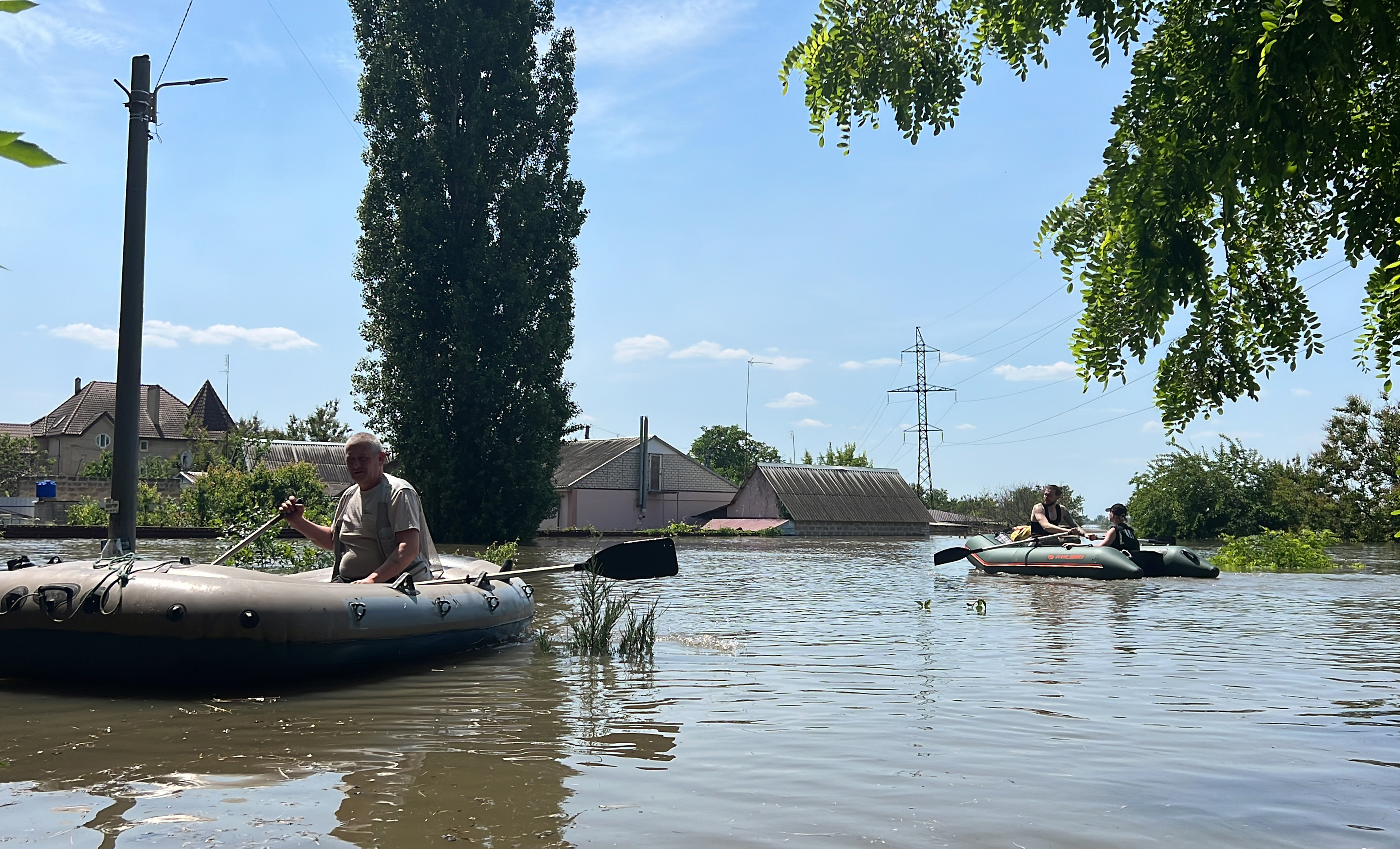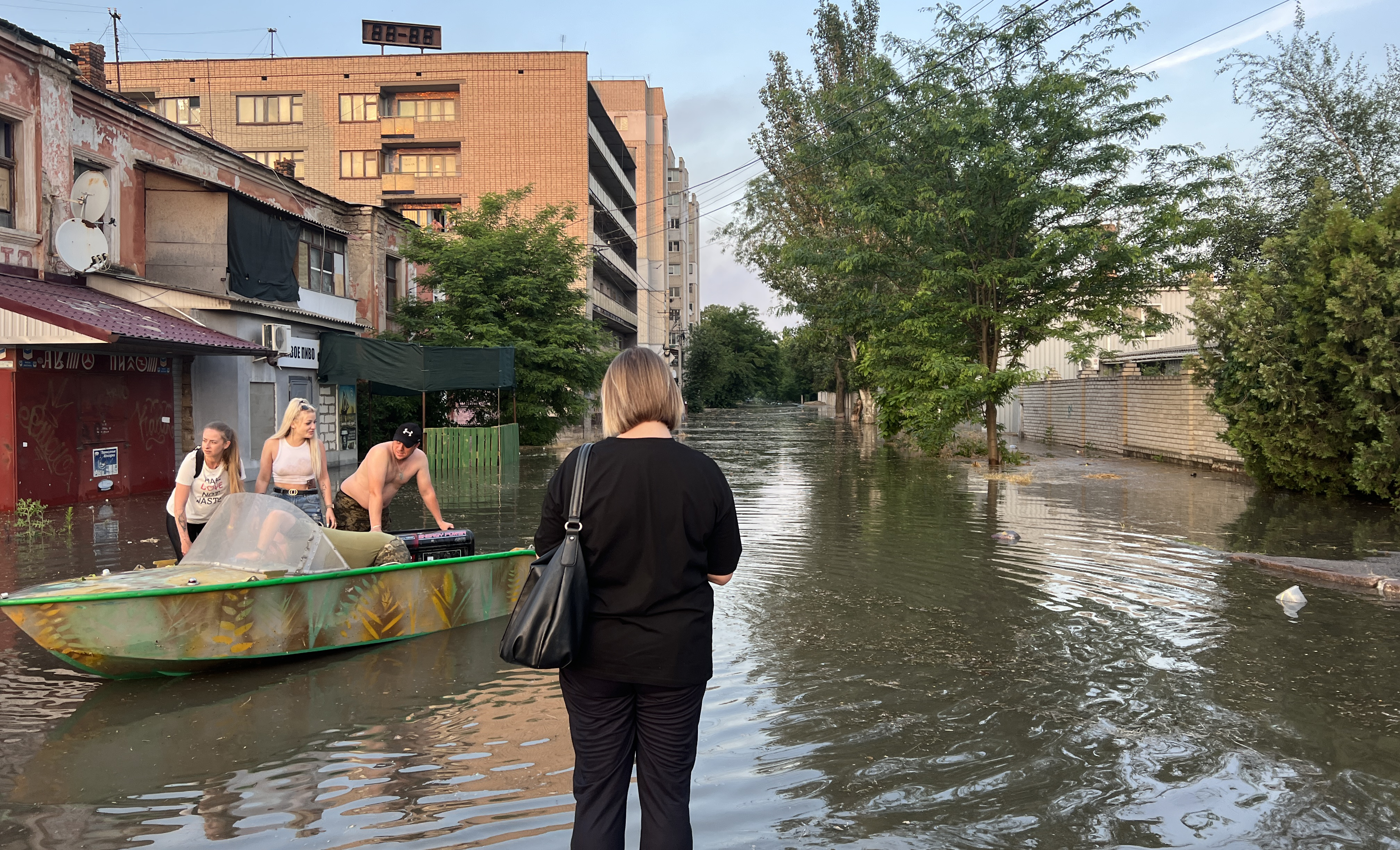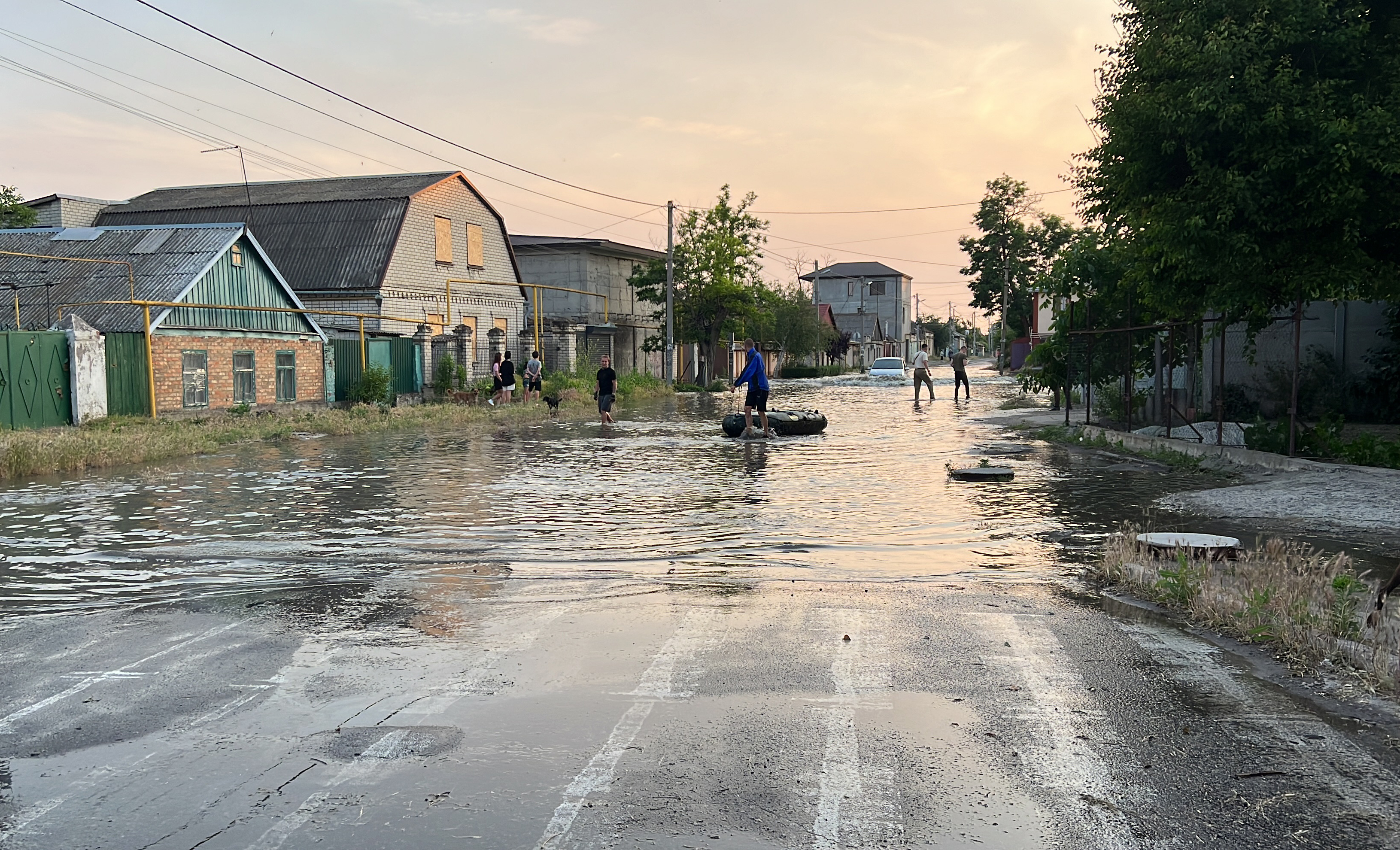 Когда плотина ГЭС была разрушена, многим показалось, что и обстрелы теперь прекратятся: позиции, с которых стреляют по городу, теоретически должны были попасть в зону затопления. Но взрывы продолжают звучать. В первый день бедствия, как говорят украинские власти, под обстрел попала эвакуационная колонна, пострадали двое полицейских. 8 июня, когда в город приехал Владимир Зеленский, ранение головы получил пожилой мужчина, которого волонтеры вывозили на лодке.