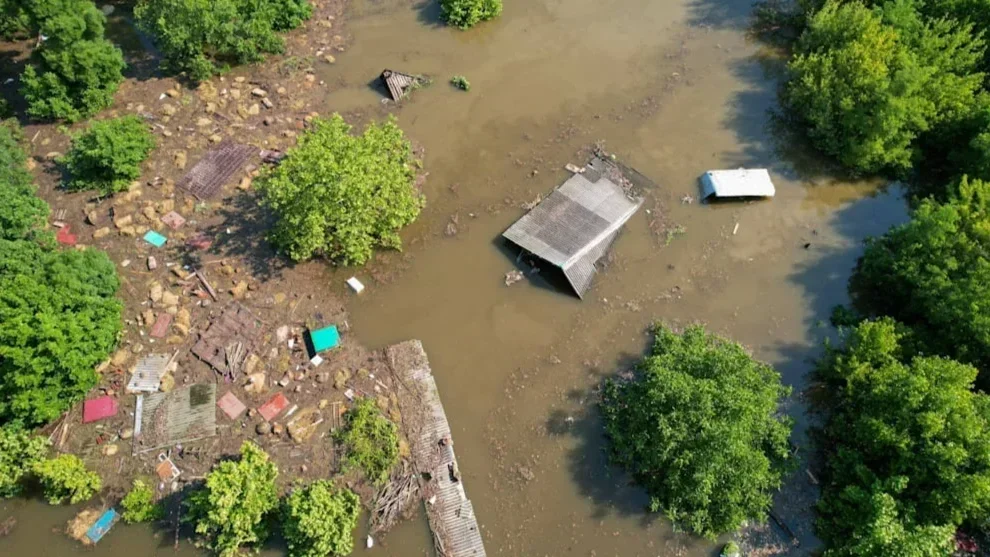 Many residents of Nova Kakhovka and neighbouring communities on the left bank of the Dnipro River, occupied by Russia, are forced to climb on the roofs of their homes to escape the rising water. They complain that the occupation authorities, who call the territory Russian, did not start evacuating in time, and now people remain trapped in their homes. The situation is complicated because residents of coastal villages and Nova Kakhovka itself have no boats: the military commandeered them last year. There are no maps of the minefields either — they disappeared along with the military. Explosions can be heard intermittently in the flooded areas.