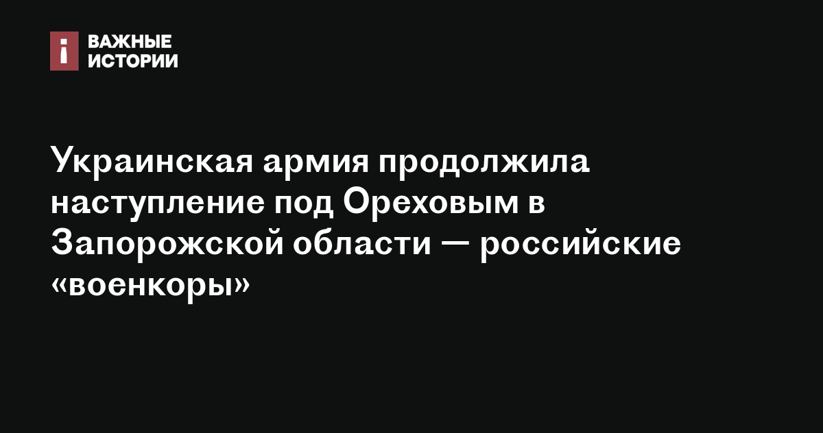 Украинская армия продолжила наступление под Ореховым в Запорожской области — российские «военкоры»