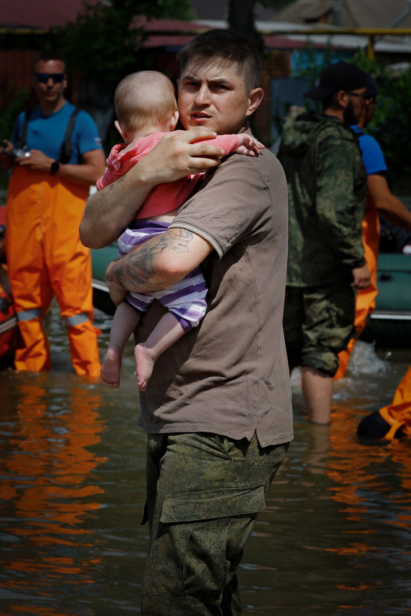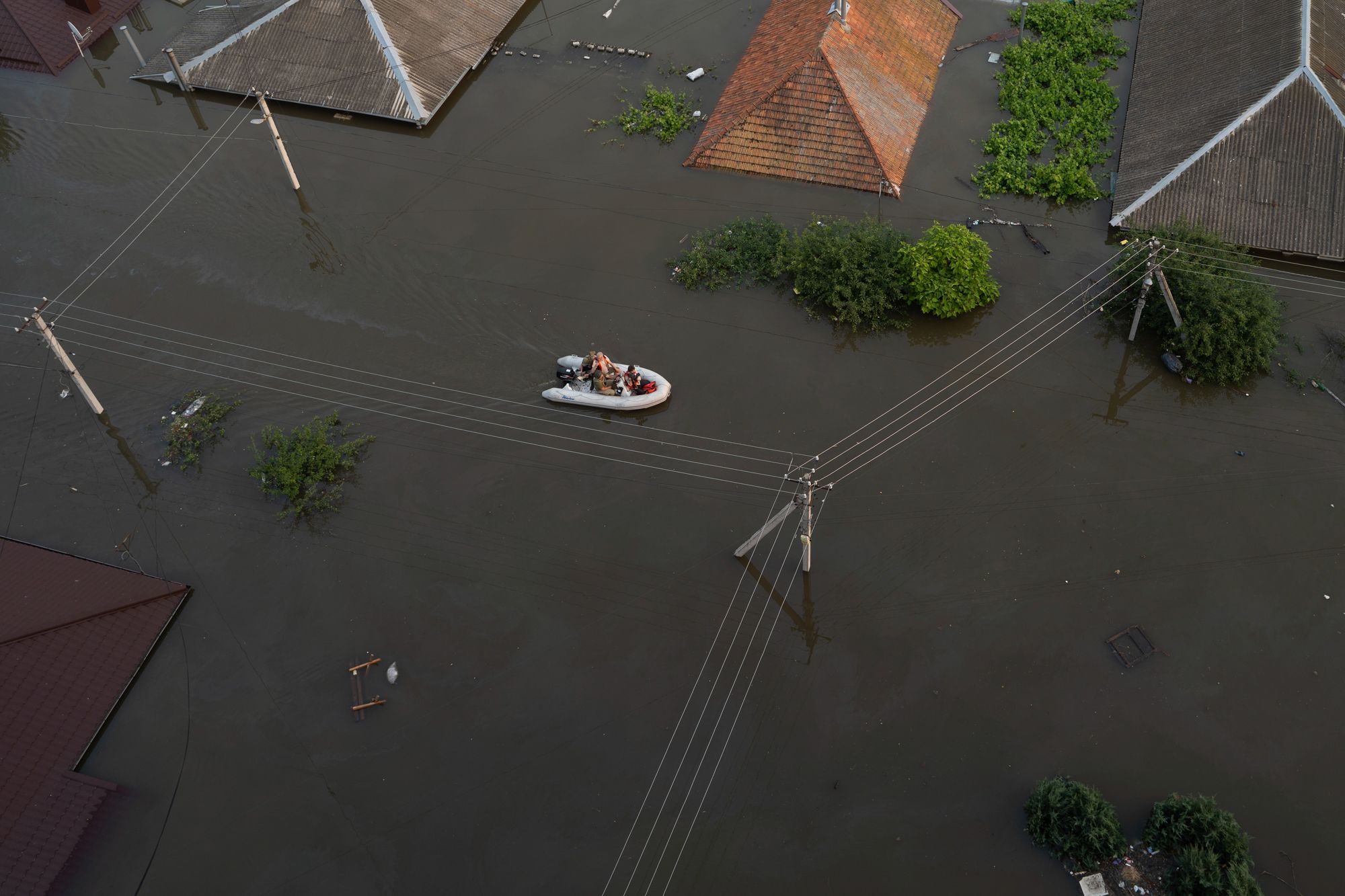 AP / Scanpix / LETA The destroyed dam at the Kakhovka Hydroelectric Power Plant (HPP). June 7, 2023.One of the Kakhovka HPP’s buildings. June 8, 2023.A Lenin statue on Dniprovsky Avenue in Nova Kakhovka, located in Russian-occupied territory. June 6, 2023.AP / Scanpix / LETA The settlement of Dnipriany, located in Russian-occupied territory. June 7, 2023.AP / Scanpix / LETA Flooded houses in Dnipriany, located on the left bank of the Dnipro River in Russian-occupied territory. Dnipriany is downstream from the Kakhovka HPP. June 7, 2023.DPS Ukraine / Scanpix / LETA An image taken from a drone used by Ukraine’s Armed Forces on June 8, 2023. The image shows a boy named Maksym who, along with his mother and sister, were waiting to be rescued in the attic of their flooded home in Oleshky. Ukrainian soldiers first used the drone to give them drinking water, before evacuating them to Kherson.Olexander Kornyakov / AFP / Scanpix / LETA Kherson. June 7, 2023.Alexander Ermochenko / Reuters / Scanpix / LETA A resident of Korsunka on a flooded street, located in Russian-occupied territory. On June 7, Vladimir Leontyev, the Russian-installed “mayor” of Nova Kakhovka, reported that Korsunka was completely underwater.The village of Korsunka. June 7, 2023.The city of Hola Prystan, located on Russian-annexed territory. June 9, 2023.Mykolo Tymchenko / EPA / Scanpix / LETA A house in the village of Sadove near the mouth of the Inhulets River, the Dnipro’s right tributary. The village is under Ukrainian control. June 8, 2023. Roman Hrytsyna / AP / Scanpix / LETA Kherson residents on an inflatable boat on a flooded city street. June 7, 2023.Daniel Carde / ZUMA Press Wire / Scanpix / LETA Kherson. June 8, 2023.Andre Alves / Anadolu Agency / ABACAPRESS / ddp images / Vida Press Rescue workers are pictured with the body of a Kherson resident. June 7, 2023.Alex Babenko / Getty Images Kherson residents escape the flooding. June 7, 2023.Matthew Hatcher / SOPA Images / LightRocket / Getty Images A Kherson resident carries bedding out of her flooded home. Evgeniy Maloletka / AP / Scanpix / LETA Kherson. June 6, 2023.Alex Babenko / Getty Images Kherson. June 7, 2023.Alex Babenko / Getty Images Photographs from a family photo album dry in an attic. Kherson. June 7, 2023.Felipe Dana / AP / Scanpix / LETA Kherson. June 7, 2023.Yan Dobronosov / Global Images Ukraine / Getty Images Kherson. June 8, 2023.Felipe Dana / AP / Scanpix / LETA Rescue workers tow boats holding residents from flooded areas of Kherson. June 6, 2023.Ivan Antypenko / Reuters / Scanpix / LETA Kherson. June 7, 2023.Alexander Ermochenko / Reuters / Scanpix / LETA The city of Hola Prystan, located in Russian-occupied territory. June 8, 2023.Felipe Dana / AP / Scanpix / LETA Kherson residents hide from Russian shelling during evacuations from the flooding. June 6, 2023.Felipe Dana / AP / Scanpix / LETA Kherson. June 6, 2023.State Emergency Service of Ukraine A hedgehog saved by the State Emergency Service of Ukraine. Kherson. June 8, 2023.Aleksey Filippov / AFP / Scanpix / LETA Kherson. June 8, 2023.Muhammed Enes Yildirim / Anadolu Agency / ABACAPRESS /ddp images / Vida Press Kherson. June 7, 2023.Valentyna Gurova / Suspilne Ukraine / JSC "UA:PBC" / Global Images Ukraine / Getty Images The Korabel district of Kherson. June 6, 2023.AFP / Scanpix / LETA Serhiy Ludinskyi, a volunteer, rescues a duck. Kherson. June 8, 2023.Libkos / AP / Scanpix / LETA A Kherson resident and her pet evacuate by boat. June 8, 2023.George Ivanchenko / EPA / Scanpix / LETA Kherson. June 7, 2023.Sergiy Chalyi / Reuters / Scanpix / LETA A mass death of fish was reported after the Kakhovka reservoir’s water levels dropped. The image was captured in the town of Marianske in the Dnipropetrovsk region. June 7, 2023.