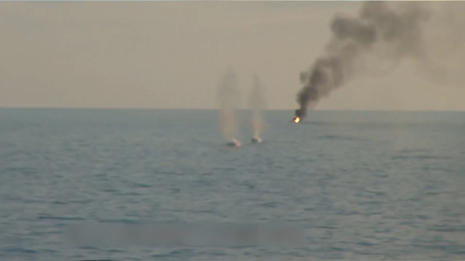 Российское военное ведомство опубликовало видео стрельбы с борта корабля и взрывов в Черном море.