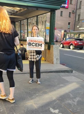 Девушку задержали возле станции метро «Петроградская», сейчас ее везут в 43-й отдел полиции. К Загородневой выехал адвокат от ОВД-Инфо Сергей Подольский.