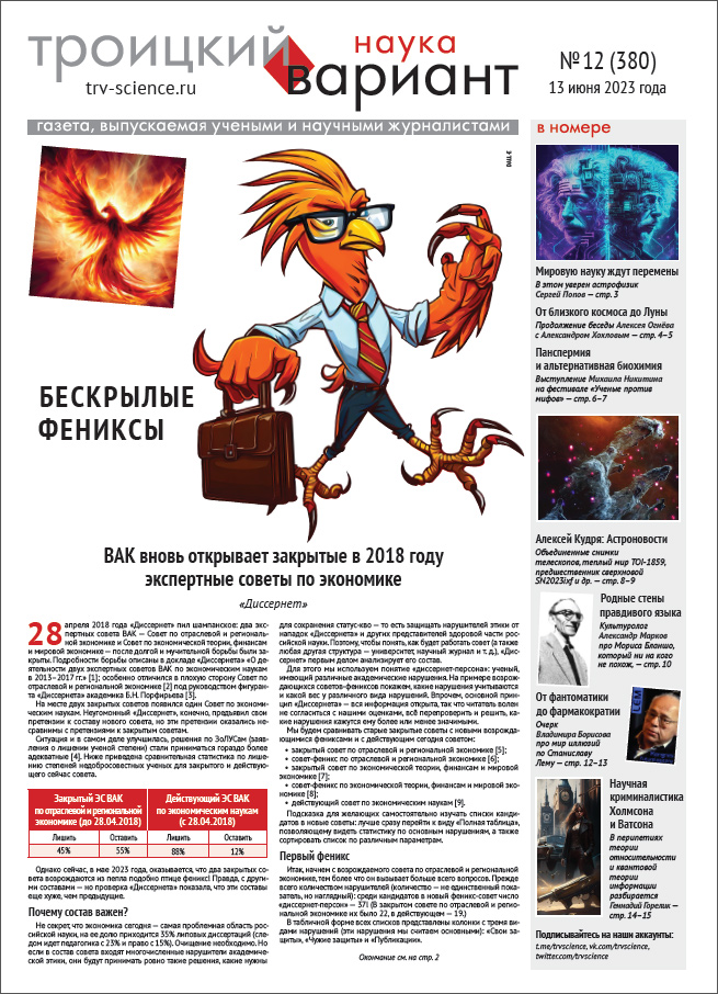 Весь номер газеты «Троицкий вариант — Наука» № 380 от 13 июня 2023 года в PDF