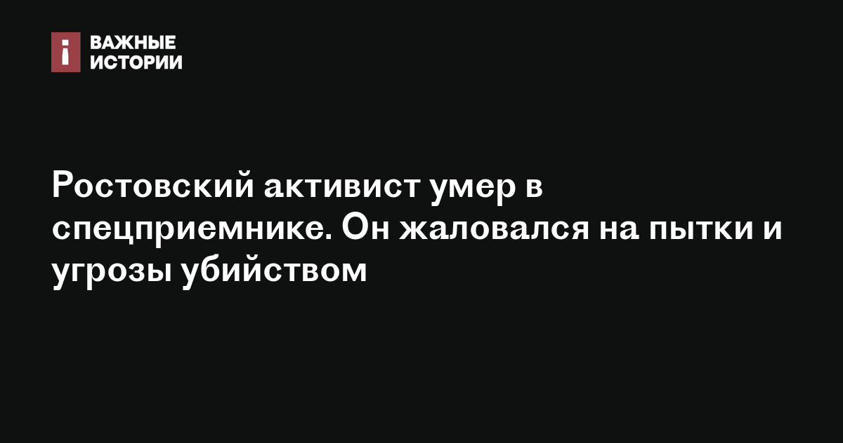 Ростовский активист умер в спецприемнике. Он жаловался на пытки и угрозы убийством
