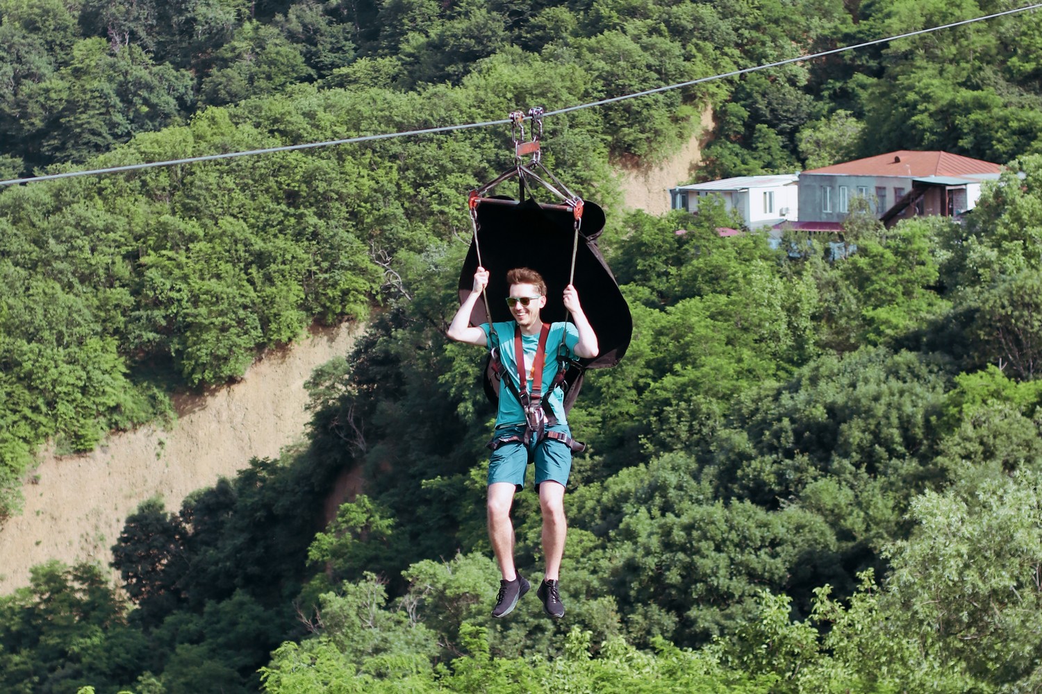 Зиплайн — спуск по воздуху из одной точки в другую на канате за счет сил гравитации. У въезда в Сигнаги находится верхняя отправная точка. Приземлитесь вы на улице Бараташвили, которая ведет к центру города. Длина спуска — 300 метров, цена — 30 лари для граждан Грузии, 50 лари для туристов.