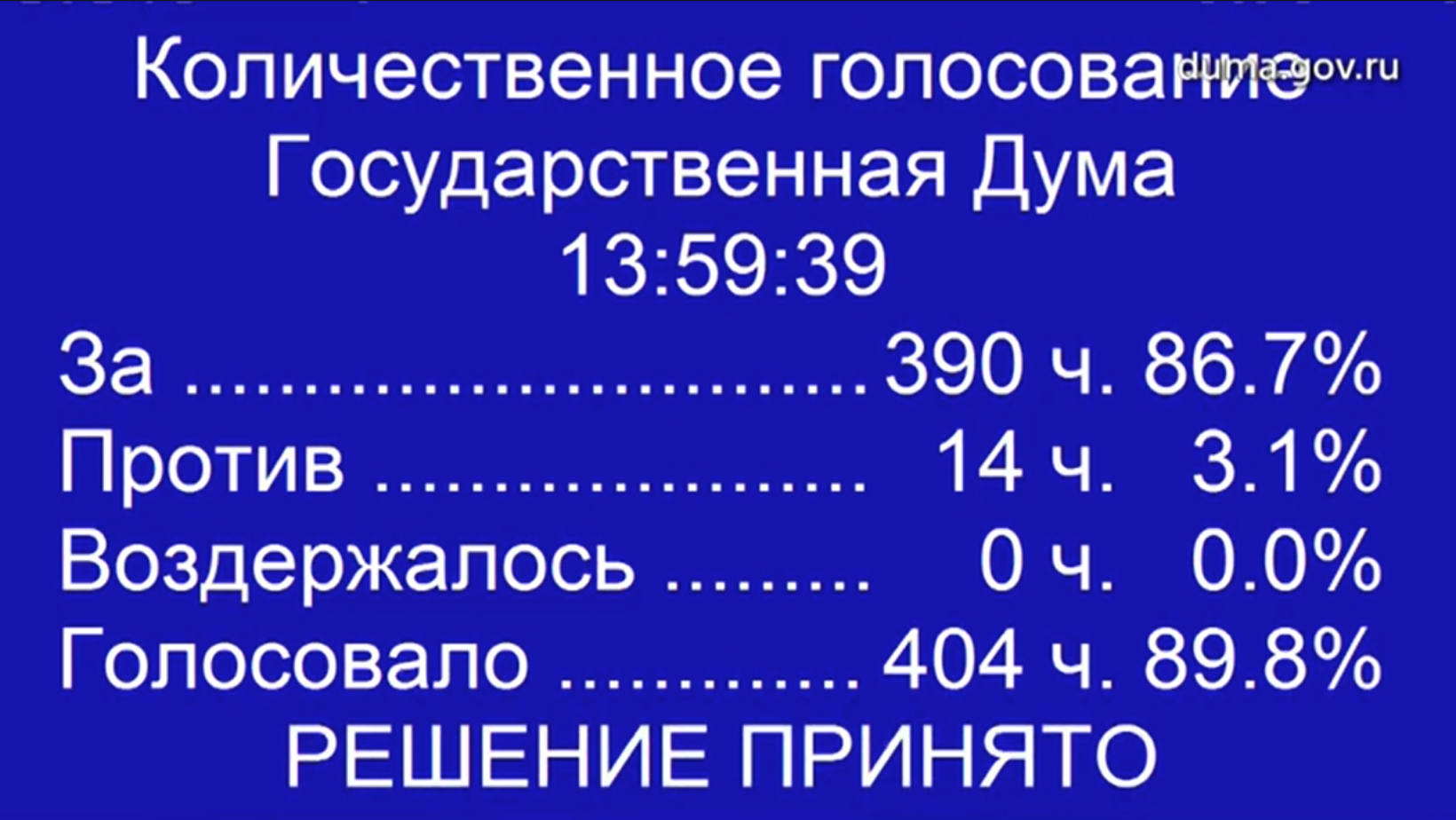 Против проголосовало 14 депутатов, 390 парламетариев закон поддержало.
