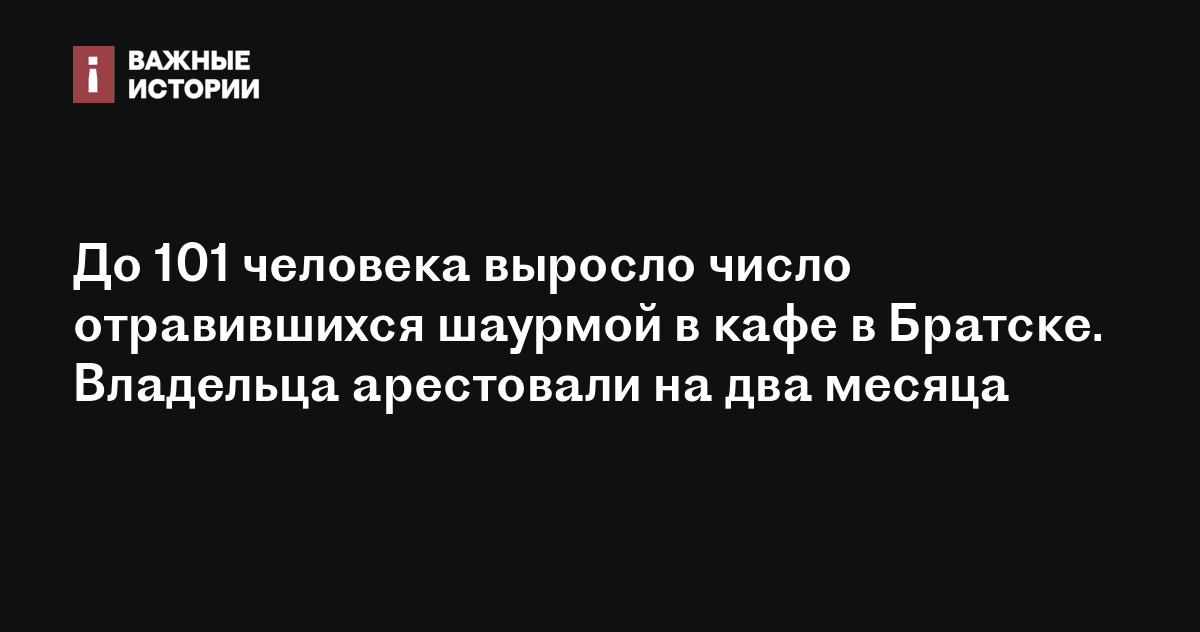Число отравившихся шаурмой в кафе в Братске Иркутской области выросло до 101 человека, 22 из них — дети, написал губернатор региона Игорь Кобзев. 51 человек был госпитализирован. Тяжелых случаев нет, семь человек уже выписали.