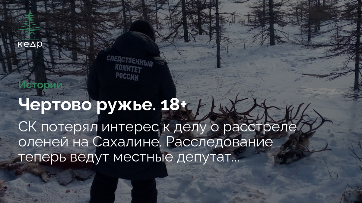 Депутат Госдумы Алексей Корниенко в разговоре с корреспондентом «Кедра» сообщил, что направил обращение сахалинских коллег генеральному прокурору Игорю Краснову и главе СК Александру Бастрыкину. Бастрыкин, впрочем, едва ли не знает, что браконьеров отпустили из-под стражи по ходатайству его же подчиненных — он ведь держит дело об убийстве оленей «на особом контроле». А вот в чем этот «особый контроль» выражается — до конца непонятно: тот факт, что оружие у Смирнова должны были изъять еще год назад, почему-то вскрывают местные депутаты, а не Следственный комитет.