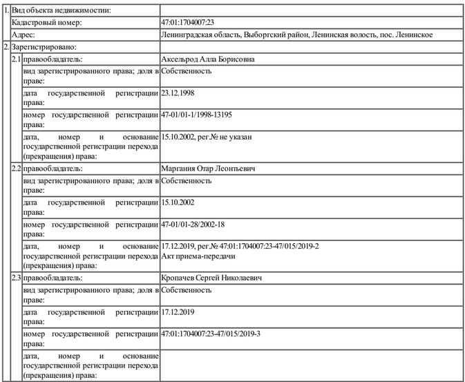 Этот участок Кропачев получил в 2019 году от декана экономического факультета СПбГУ, подчиненного своего отца, Отара Маргания. В этом же поселке у Кропачева есть еще один участок с домом по соседству с первыми двумя.