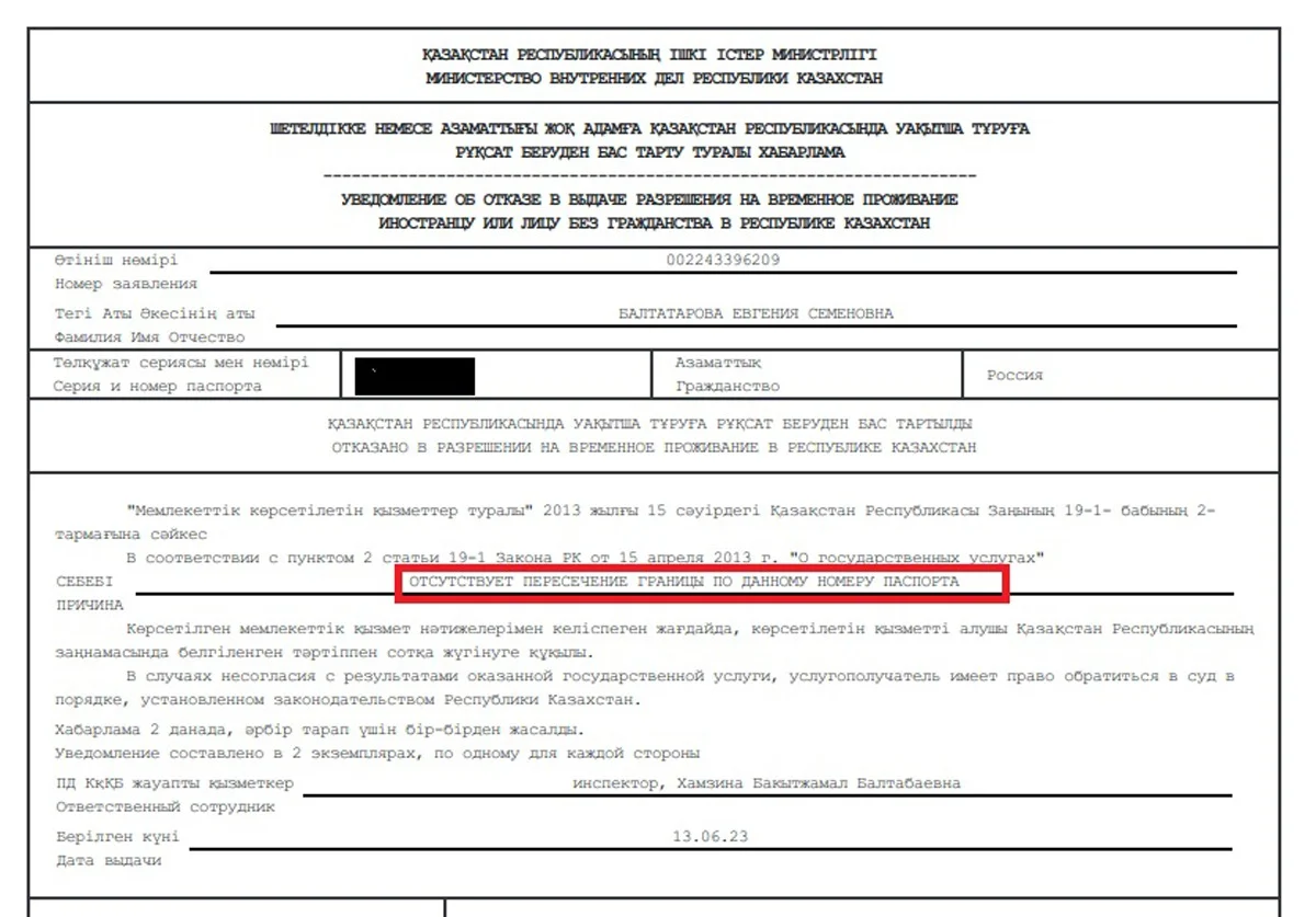 В то же время Астана действительно может просто отказать журналистке в дальнейшем проживании на территории республики — по истечении срока действия РВП.