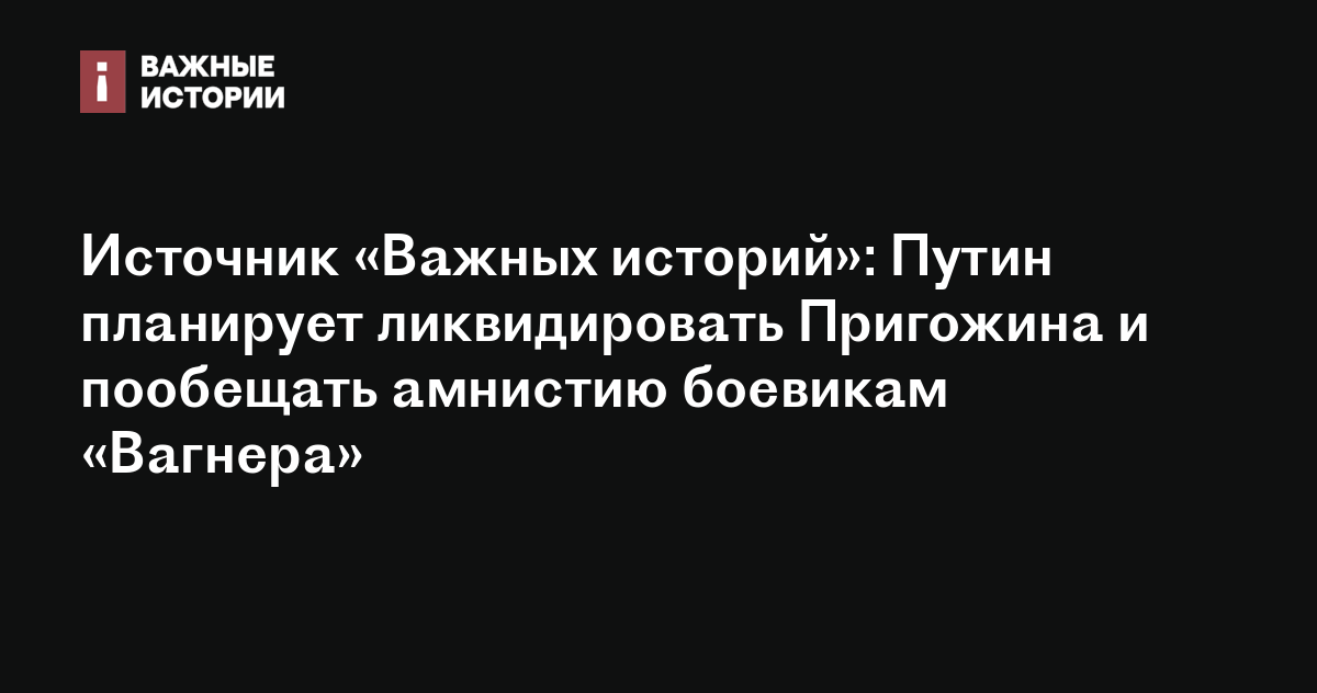 Источник «Важных историй»: Путин планирует ликвидировать Пригожина и пообещать амнистию боевикам «Вагнера»