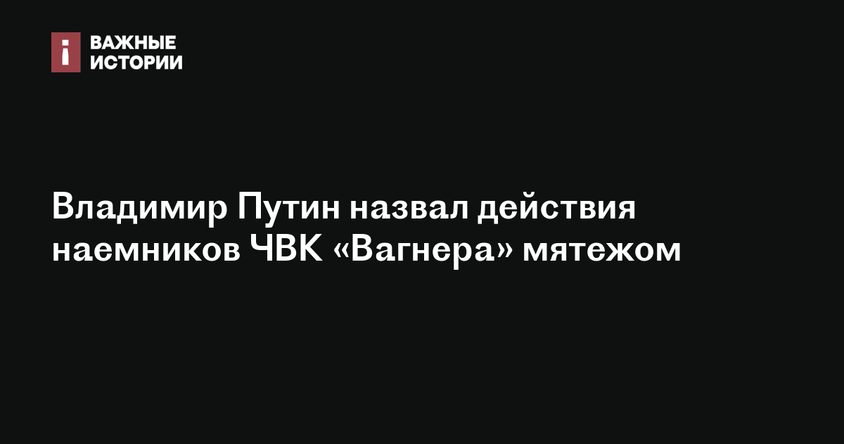 Владимир Путин назвал действия наемников ЧВК «Вагнера» мятежом