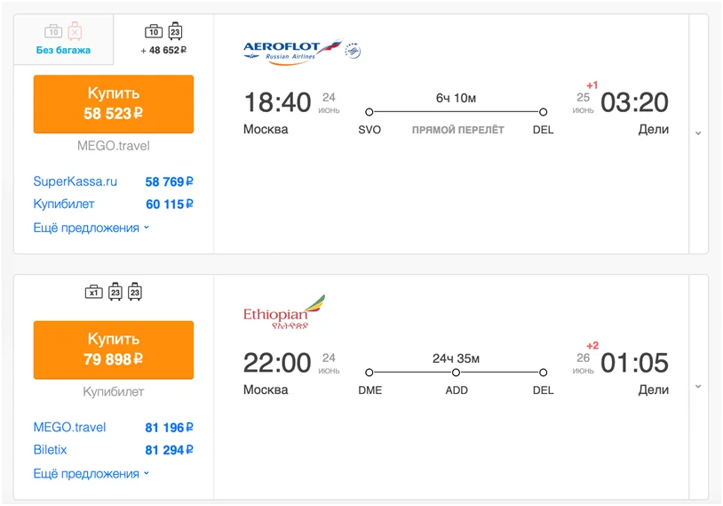Согласно «Буруки» рейсы до Дели начинаются от 58 тысяч за прямой перелет «Аэрофлотом». С одной пересадкой можно долететь за 79 тысяч.