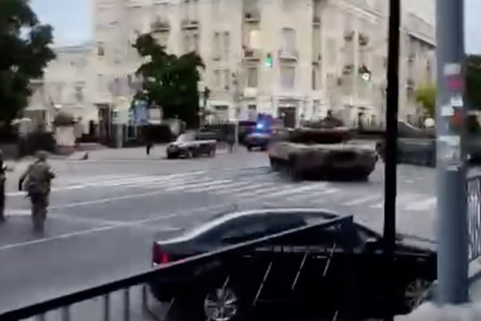 Что сейчас происходит в Ростове. Ближе к 5 утра стали приходить видеозаписи из центра Ростова (1, 2, 3). Издание 161.ru сообщило, что военная техника окружила здание Южного военного округа. На видео видно танки, чьи дула направлены прямо на здание. На улицах множество вооружённых людей в форме. К каким подразделениям они относятся — неизвестно.