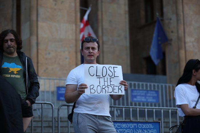 «В России начался военный переворот, что является прямой угрозой для Грузии в условиях открытой границы. Правительство Грузии должно немедленно закрыть границу с Россией!» — говорится в анонсе митинга 24 июня.