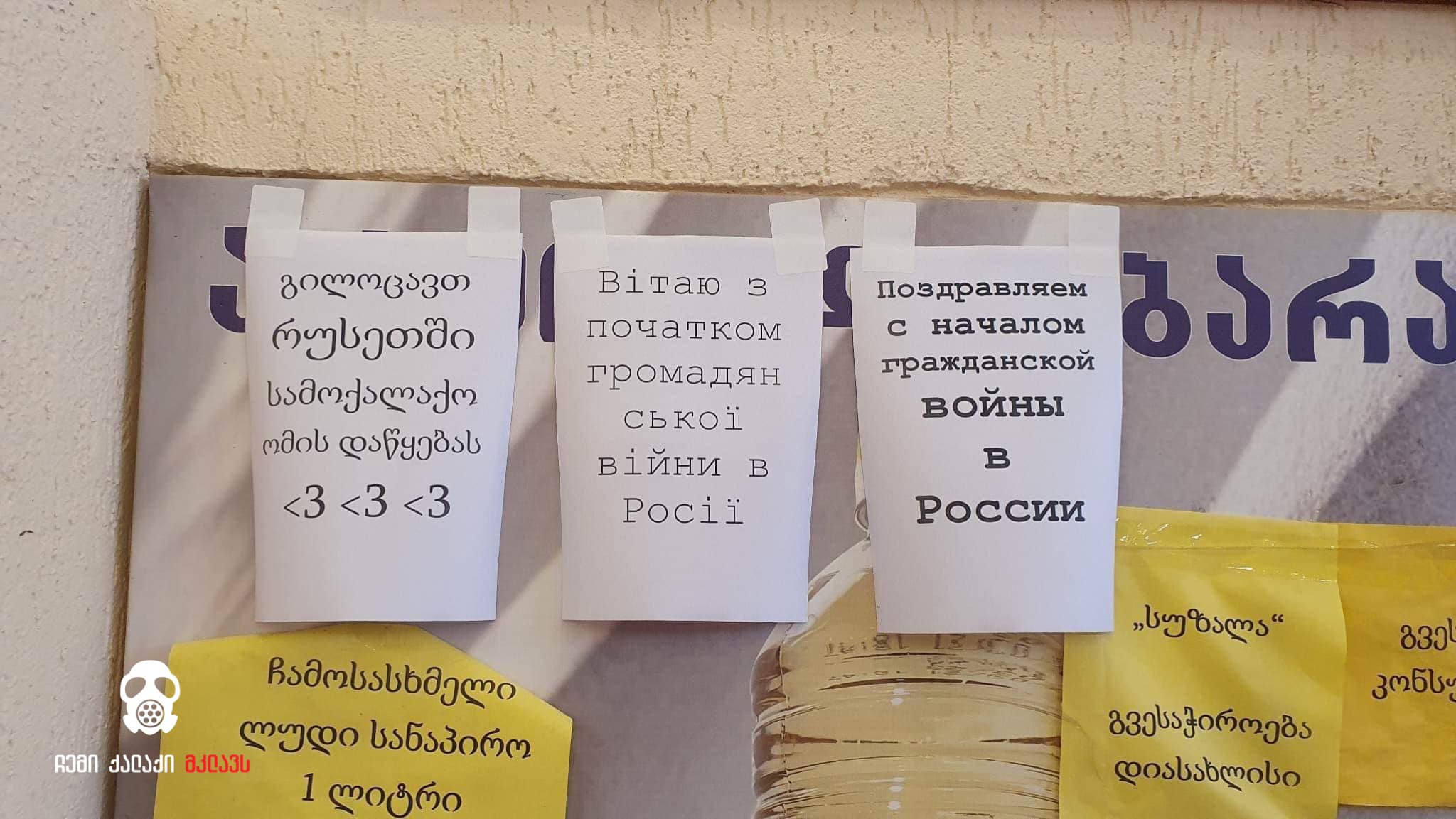 В одном из магазинов Тбилиси заметили объявление на грузинском, украинском и русском: «Поздравляем с гражданской войной в России».