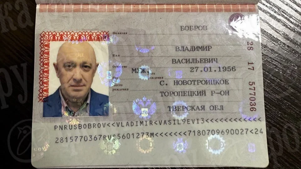 Поддельный паспорт Евгения Пригожина, найденный силовиками. Фото: «Фонтанка»
