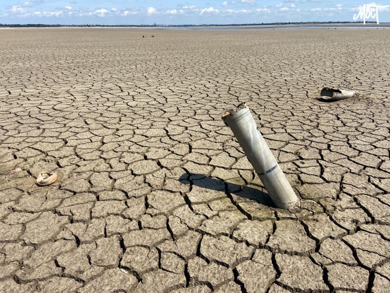 - Каховское водохранилище засохло. Фотографии опубликовало местное издание «Мост». По словам корреспондента, кадры были сделаны примерно в 1,3 километра от правого берега Днепра, где находятся позиции ВСУ. На дне водохранилища видны обломки ракет, а на горизонте — позиции российской армии.