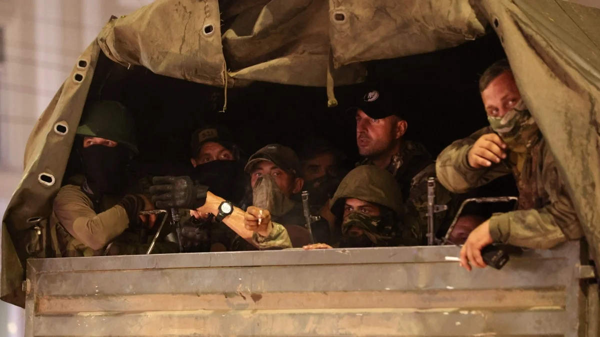 Бойцы ЧВУ «Вагнер» в автомобиле на улице Ростова-на-Дону. Фото: Эрик Романенко / ТАСС