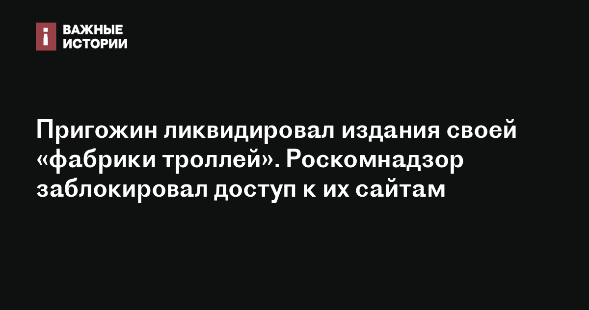 Пригожин ликвидировал издания своей «фабрики троллей». Роскомнадзор заблокировал доступ к их сайтам