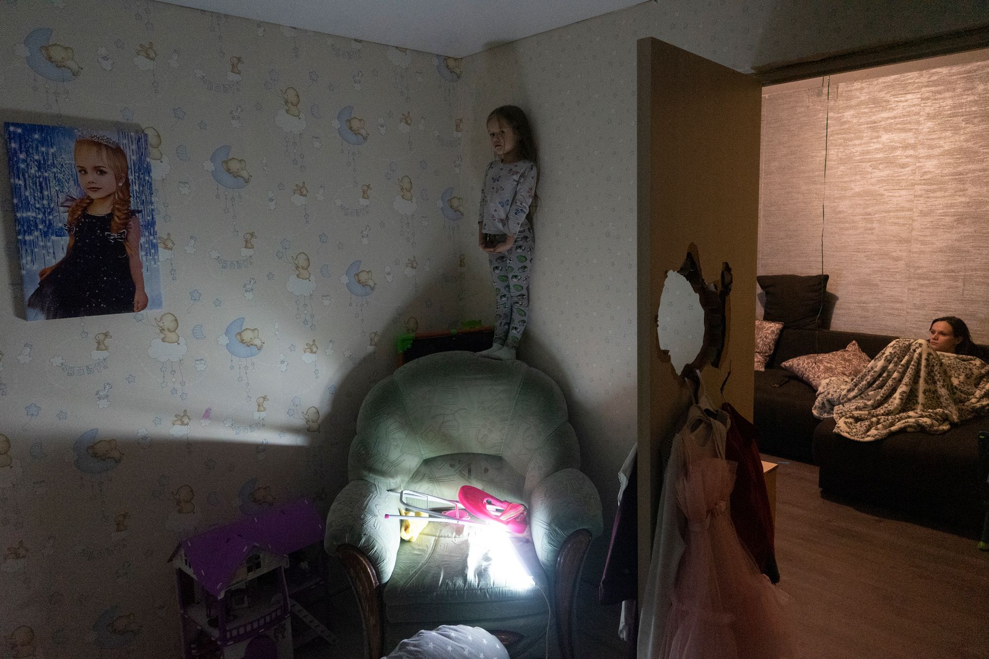 Between September 2021 and February 2022, Belgian photographer Aurélien Goubau made a series of trips to Murmansk, Russia. Knowing little about Russia, its politics, or its people, and inspired by a radio report he heard about the Znamya project, in which Russian scientists sought to light up the northern sky through giant mirrors in space in the 1990s, he set off to use Murmansk’s near-perpetual darkness as a metaphorical lens through which to explore the lives of the city’s inhabitants. And while his original intention was to discover contemporary Russia from a “naive perspective,” the onset of Russia’s full-scale invasion of Ukraine both forced him to reckon with Russia’s realities and imbued his own Znamya project with new meaning. Nonetheless, Goubau says that his attitudes towards the people he photographed has not changed, even if his attitude to the country as a whole has.
