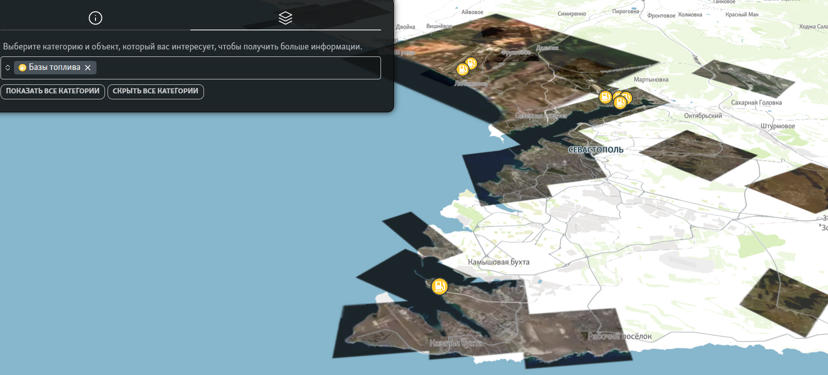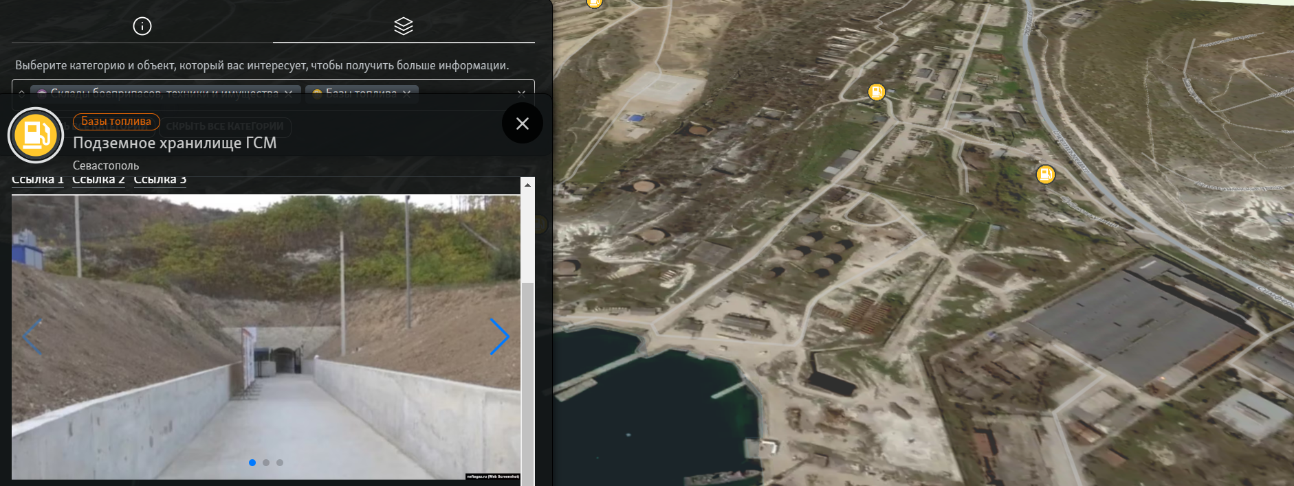 Это не единственная нефтебаза в Севастополе, снабжающая российские войска. На карте военных объектов показаны и другие хранилища в этом городе.