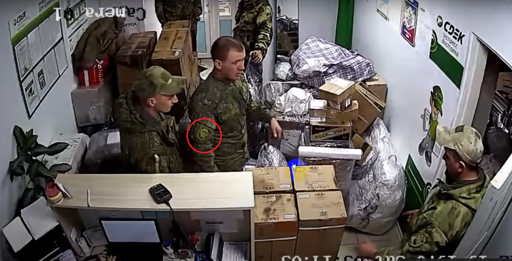 Именно шеврон десантника 56-го дшп был опознан беларусскими расследователями на кадрах отправки российскими военными награбленное почтой из Мозыря в Беларуси.