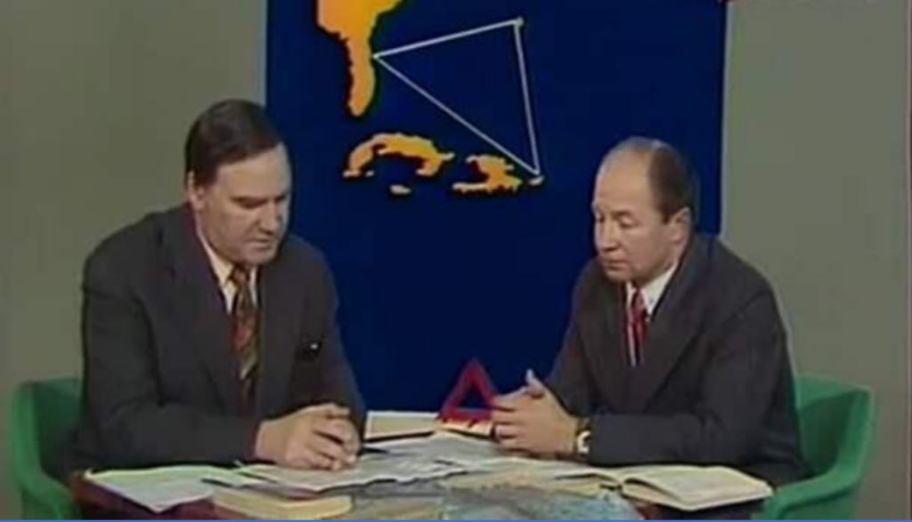 Справа на скриншоте вы видите подводного офицера Владимира Ажажу в выпуске передачи «Очевидное — невероятное» (1976) про Бермудский треугольник: именно с нее он начал свою «невероятную» карьеру, переквалифицировавшись затем в специалиста по НЛО. Именно Ажажа упоминается в песне Владимира Высоцкого, написанной в 1978 году: