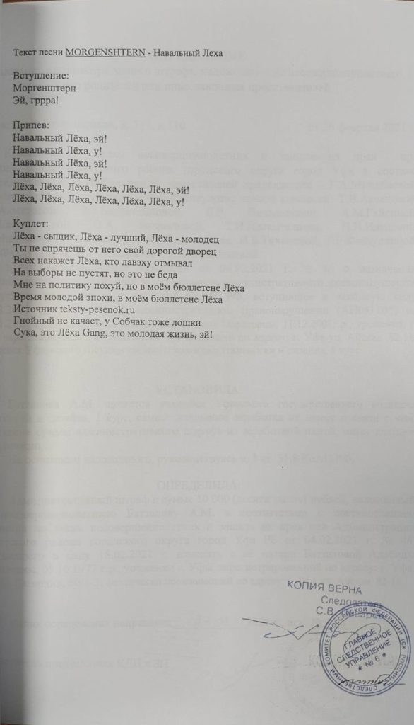 Следствие включило в материалы уголовного дела против Навального текст песни Моргенштерна «Навальный Леха»