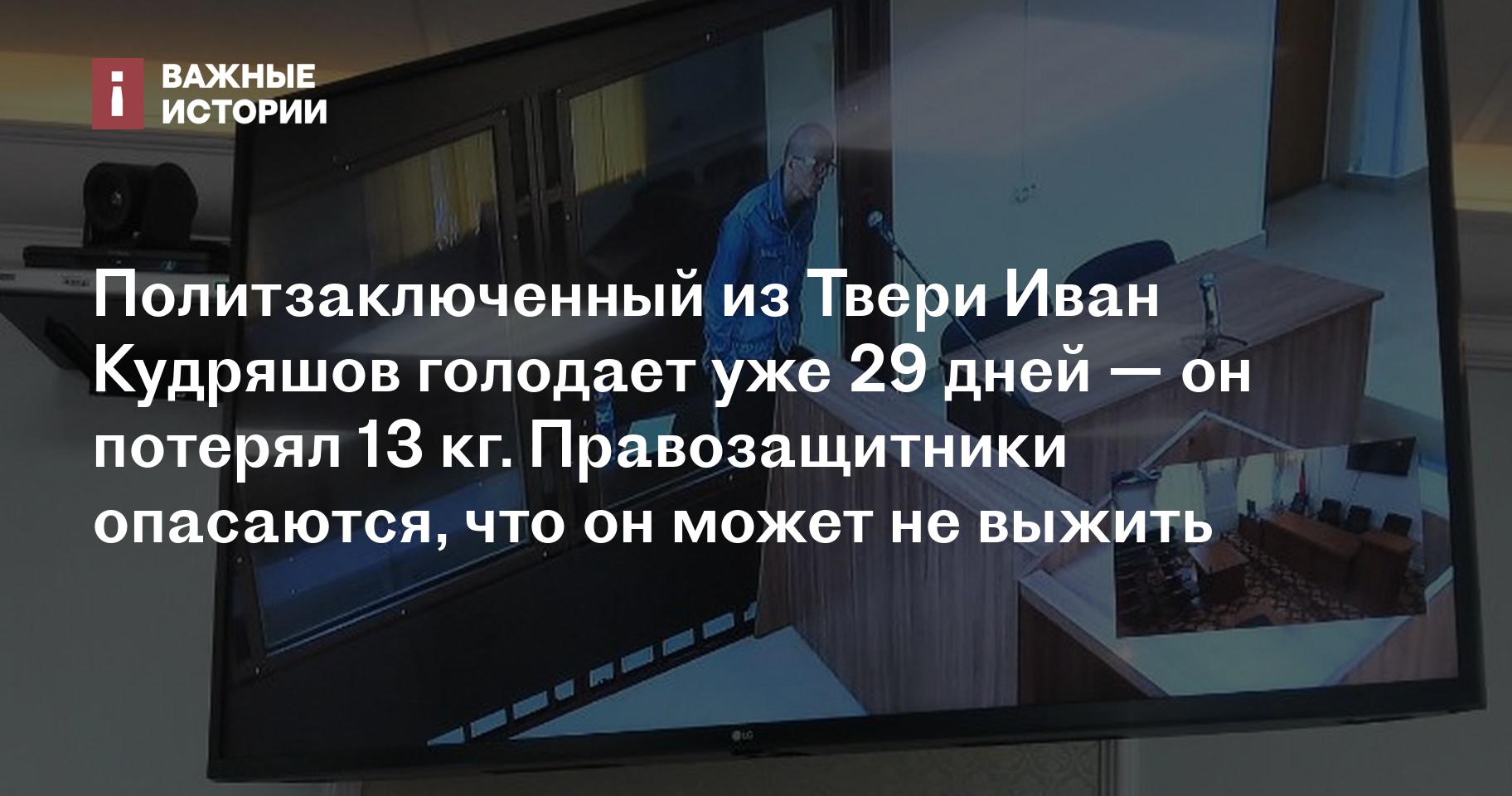 Политзаключенный из Твери Иван Кудряшов голодает уже 29 дней — он потерял 13 кг. Правозащитники опасаются, что он может не выжить