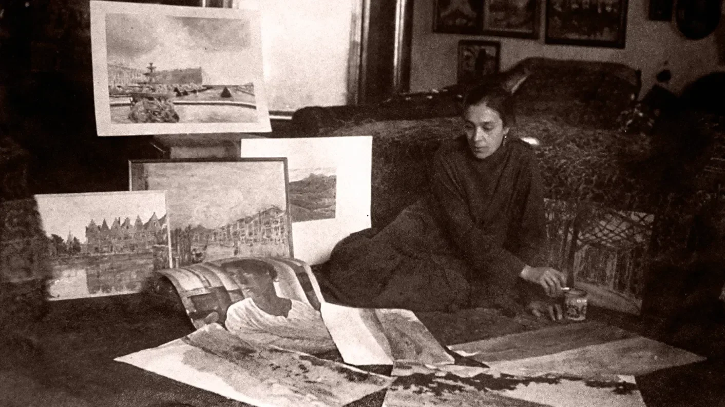 Надежда Добычина подбирает работы для выставки Художественного бюро, 1917 г. Фото: архив
