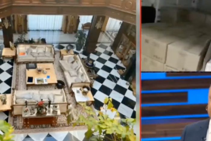 «Россия-1» назвала дом Пригожина «дворцом борца с коррупцией». В выпуск попали коробки с деньгами в заводских пачках и оружие, интерьеры, поддельные паспорта, шкаф с париками и гримом.
