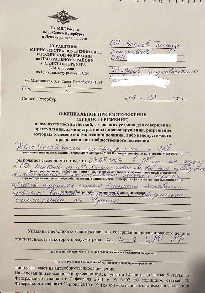 «Предостережение абсурдное и незаконное: согласно 54 ФЗ мероприятия с публикой до 50 человек не нуждаются в согласовании. Что завтра? Арестуете нас за гуманитарную деятельность и помощь Донбассу?», — заявили в организации.
