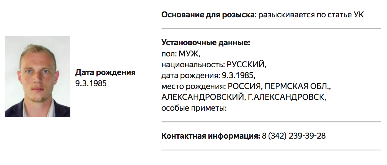 МВД объявило в розыск бывшего координатора штаба Алексея Навального в Перми Сергея Ухова. Информацию об этом «Медиазона» обнаружила в базе ведомства.