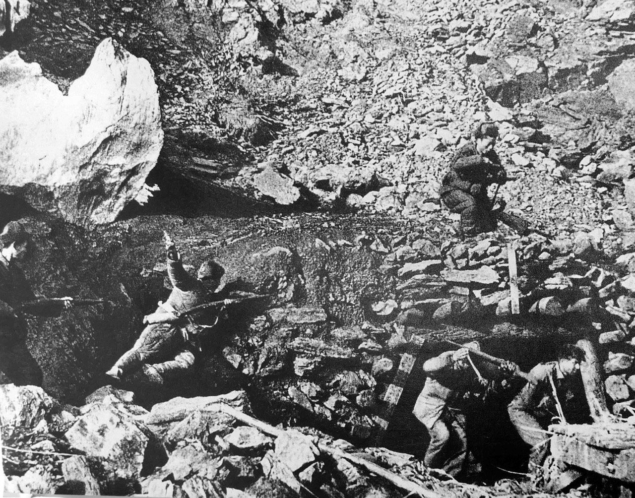 Universal History Archive / Universal Images Group / Getty Images Солдаты Китайской народно-освободительной армии атакуют позиции Гоминьдана. 1948 год