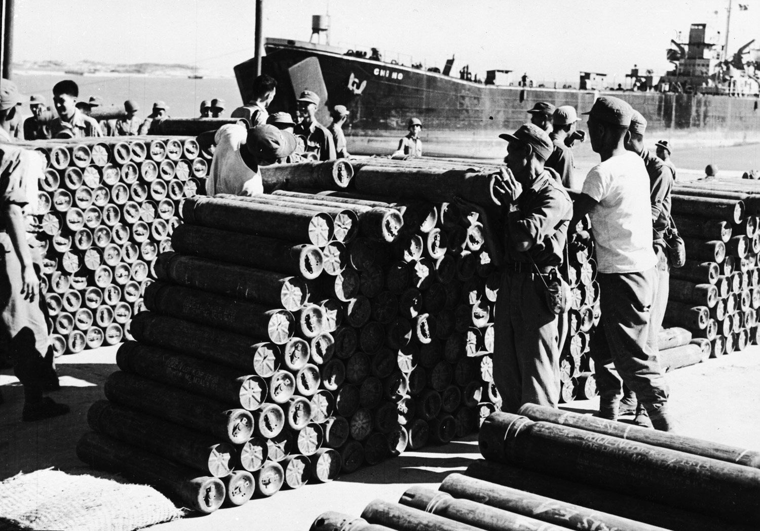 Fernand Gigon / Three Lions / Getty Images Склад боеприпасов войск Гоминьдана на острове Цзиньмэнь у берегов материкового Китая. 1954 год