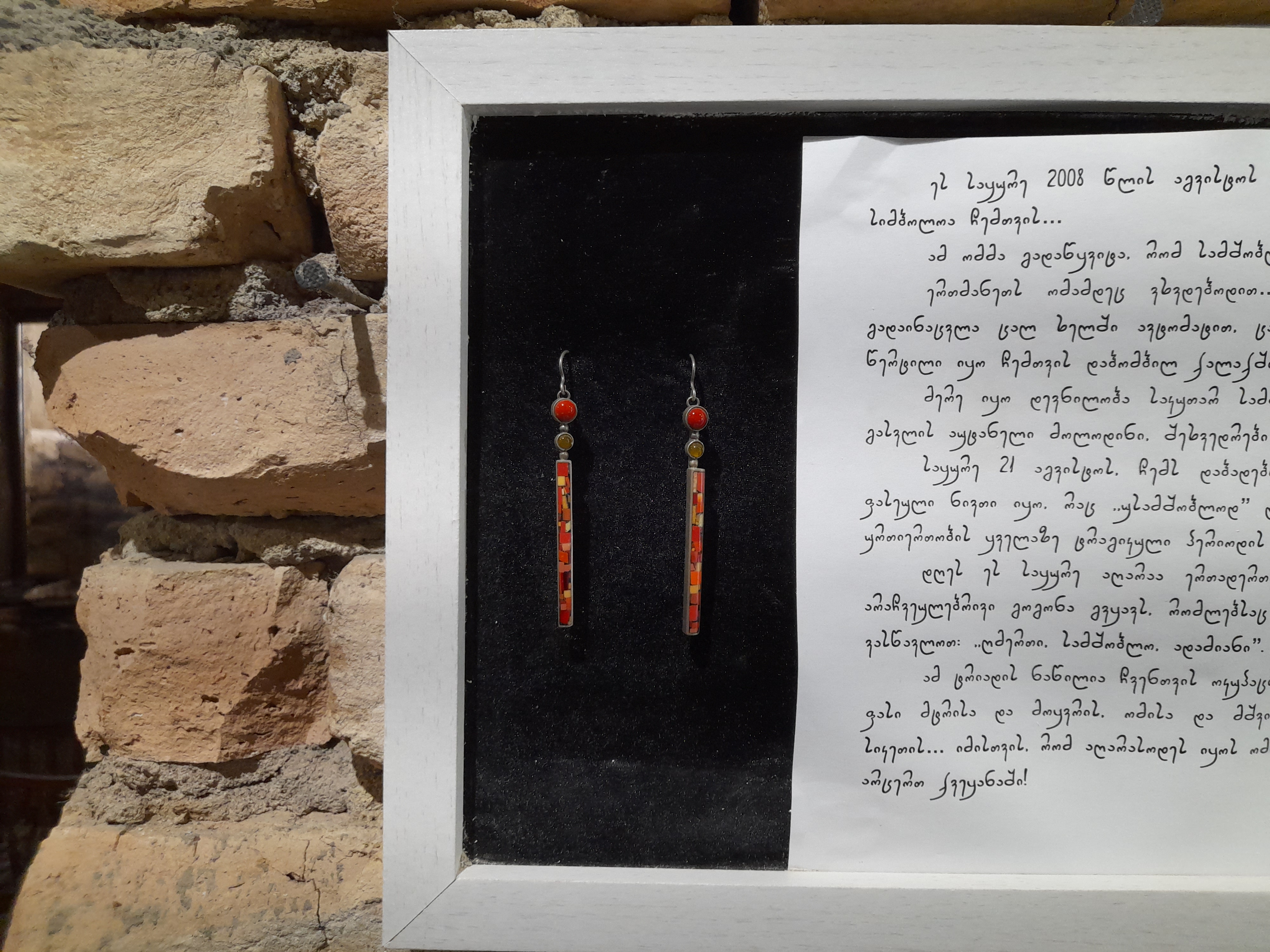 Для музейной коллекции некоторые жители села передали свои личные вещи. При входе в помещение висит униформа грузинского военного, принимавшего участие в боевых действиях в 2008 году. На дальней стене – красные серьги, подаренные музею местной жительницей.
