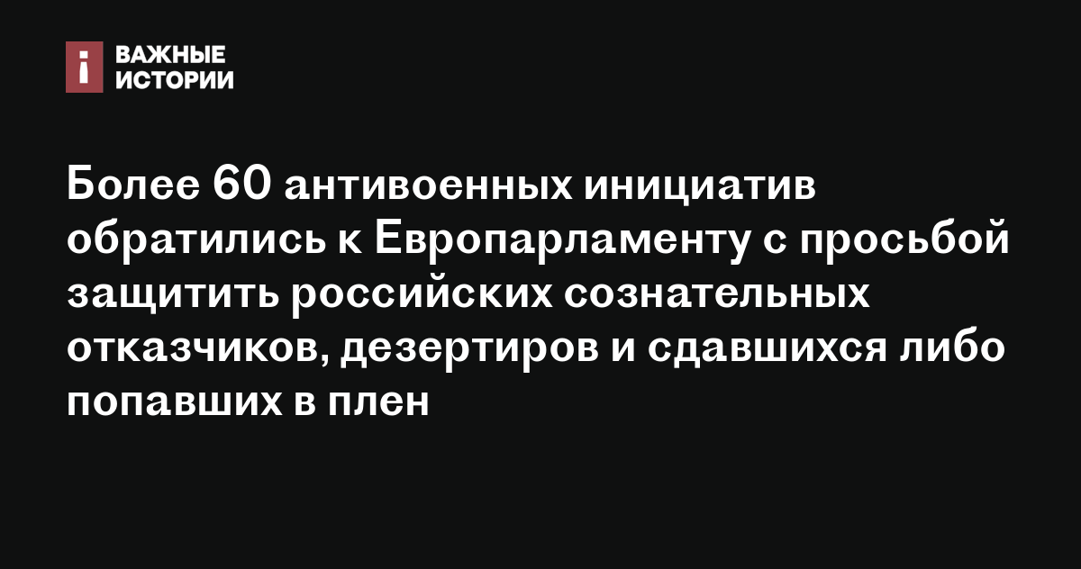 Более 60 антивоенных инициатив обратились к Европарламенту с просьбой защитить российских сознательных отказчиков, дезертиров и сдавшихся либо попавших в плен